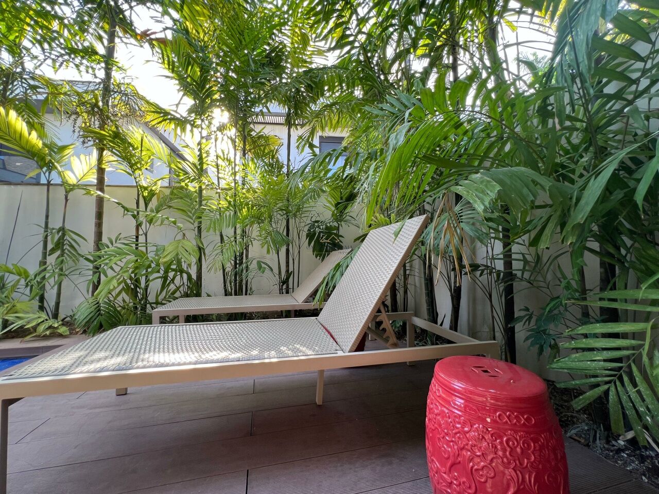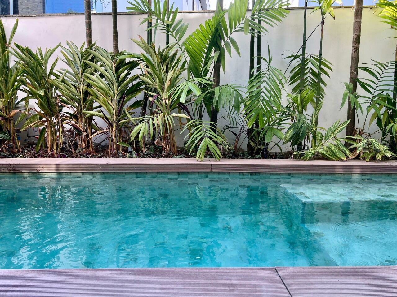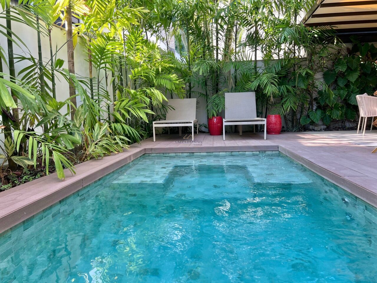 O exterior foi pensado para relaxar, com deck ecológico italiano, piscina privativa aquecida com hidromassagem (até 40 °C), espaço gourmet com churrasqueira e jardim privativo. O condomínio conta com portaria 24h, zelador, 2 vagas para auto, garantindo segurança e tranquilidade.
