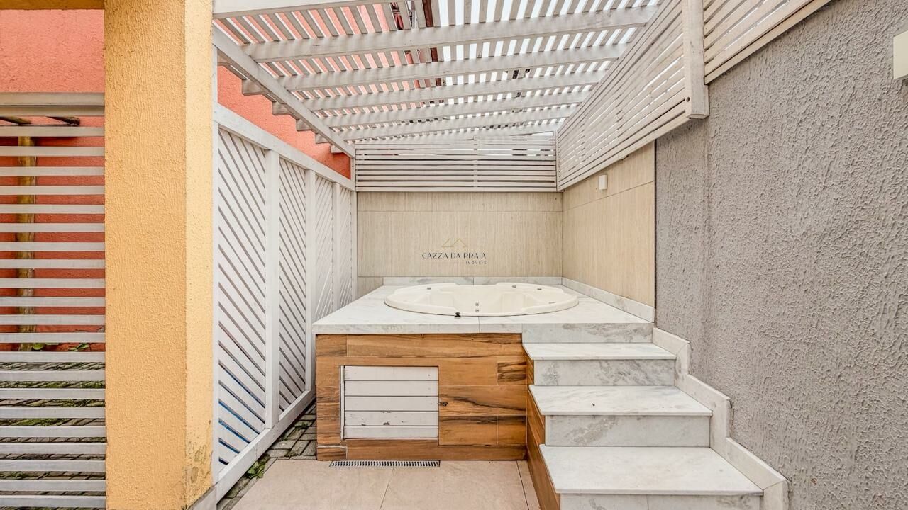 O imóvel conta com três suítes, lavabo e sala integrada em dois ambientes, criando um espaço acolhedor para o dia a dia. Na área externa, a churrasqueira e a jacuzzi proporcionam momentos de lazer e relaxamento, perfeitos para aproveitar com família e amigos.