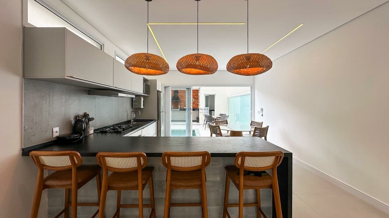 O imóvel conta com três suítes, salas em dois ambientes e cozinha gourmet, criando um espaço moderno e acolhedor. A varanda gourmet com churrasqueira se integra à piscina privativa, proporcionando excelente aproveitamento para momentos de lazer e convivência.