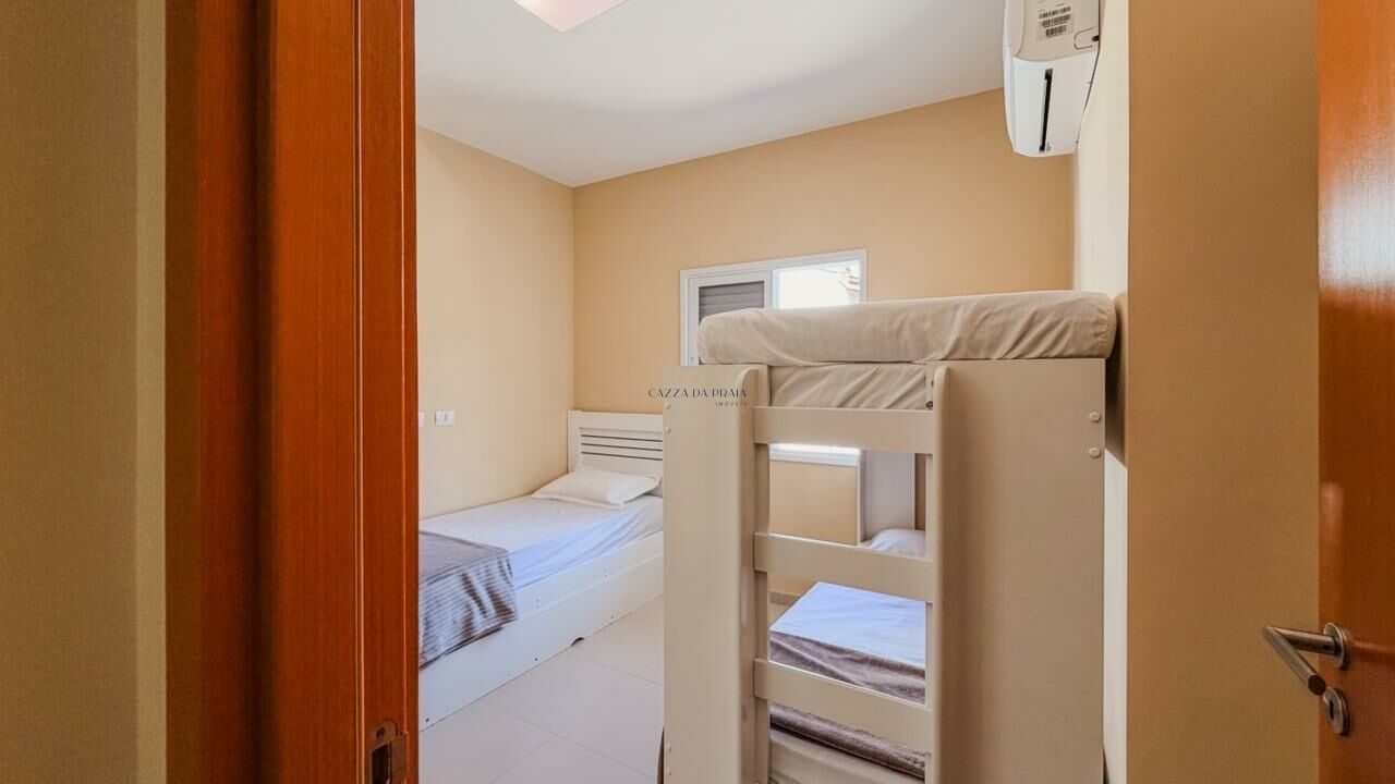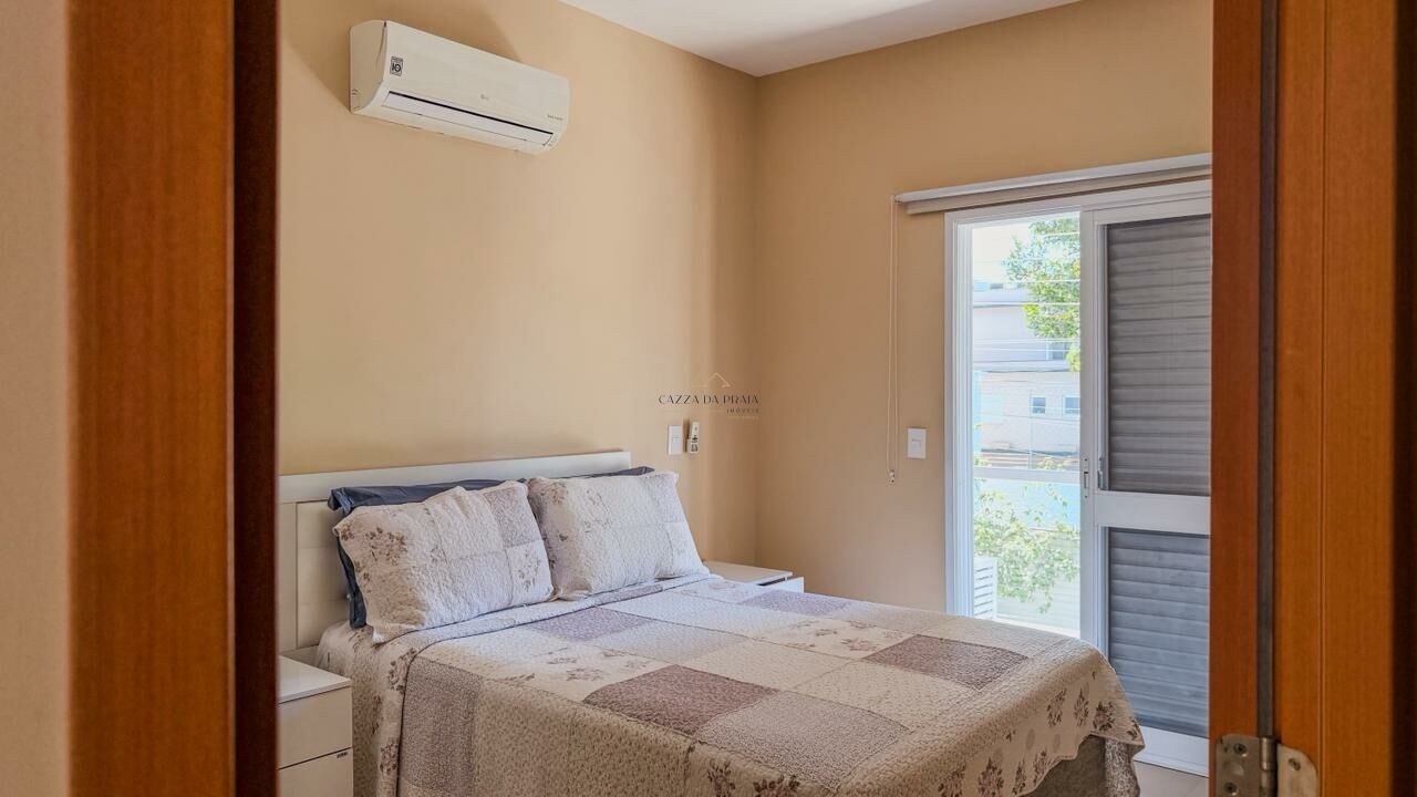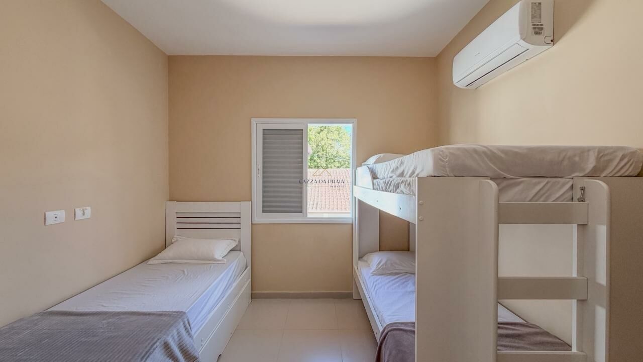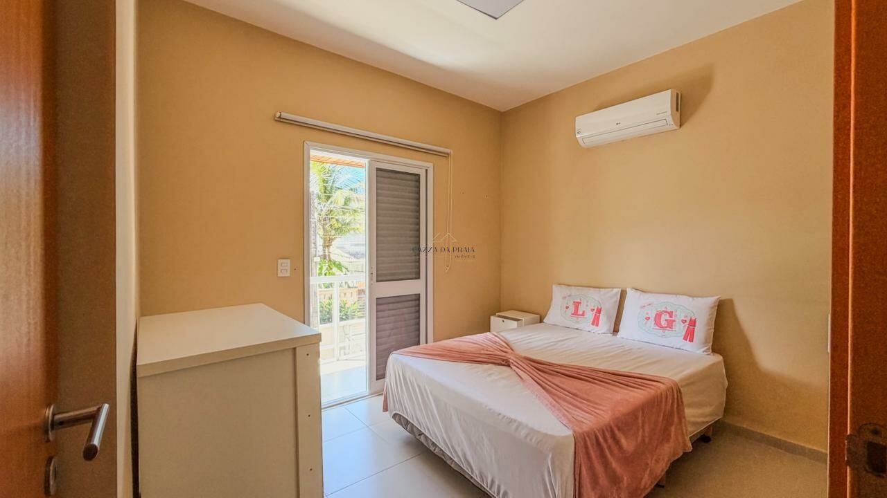 Totalmente mobiliada (porteira fechada), a residência dispõe ainda de duas vagas de garagem. O condomínio oferece estrutura completa com caseiro, portão eletrônico, serviço de praia e vigilância 24 horas, garantindo segurança e comodidade.