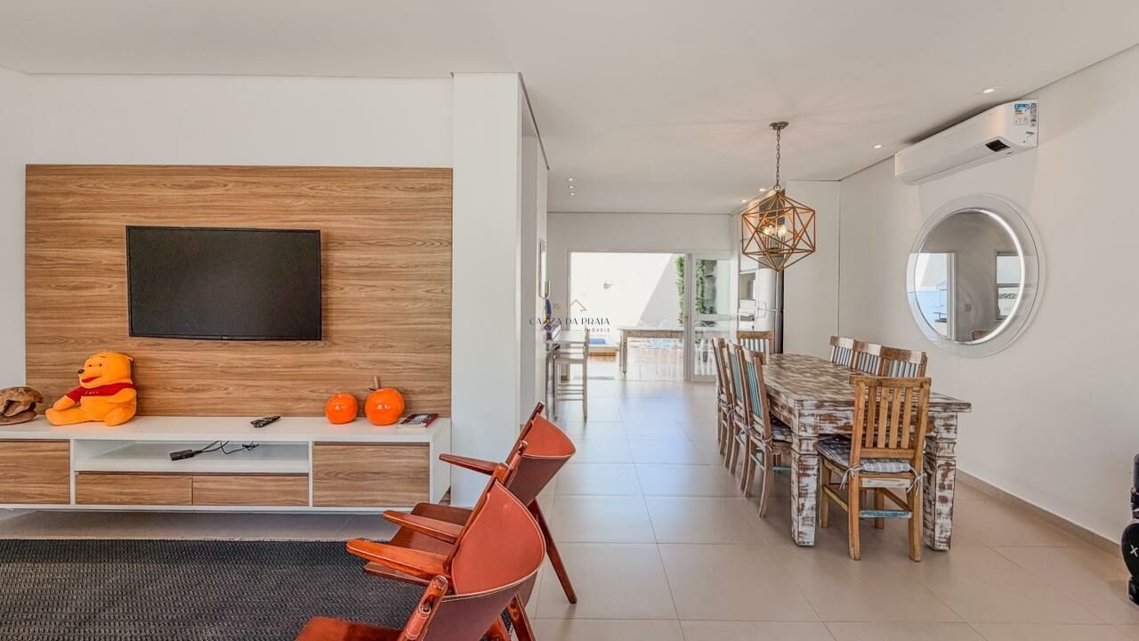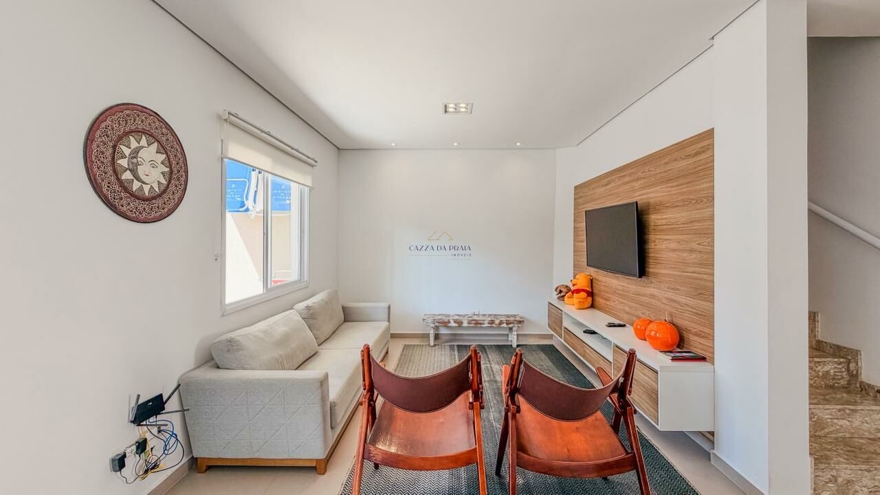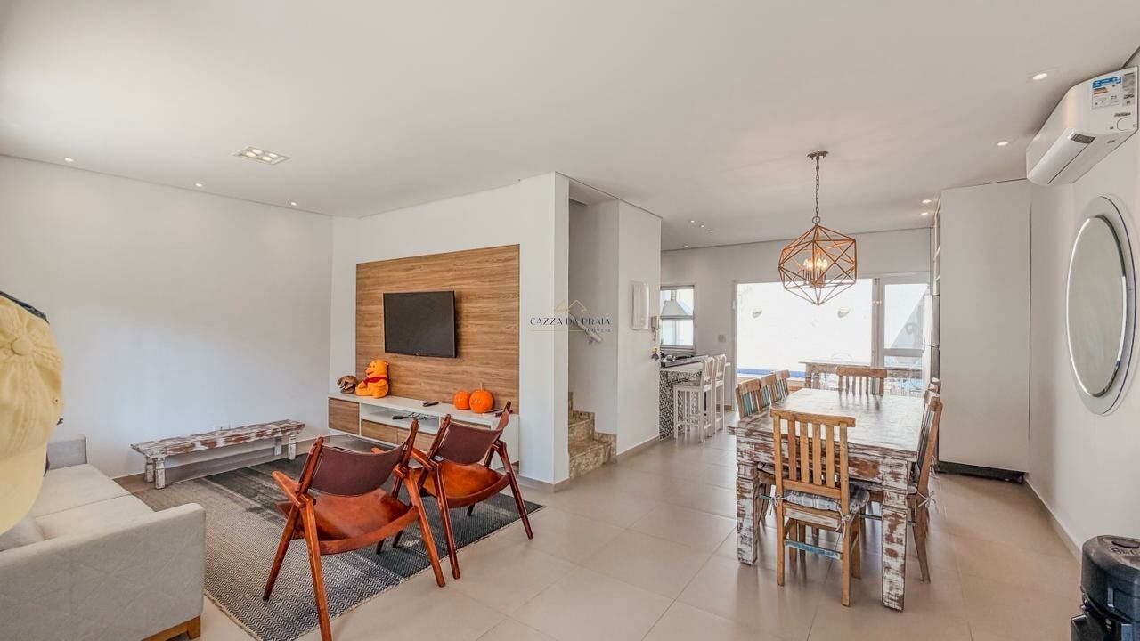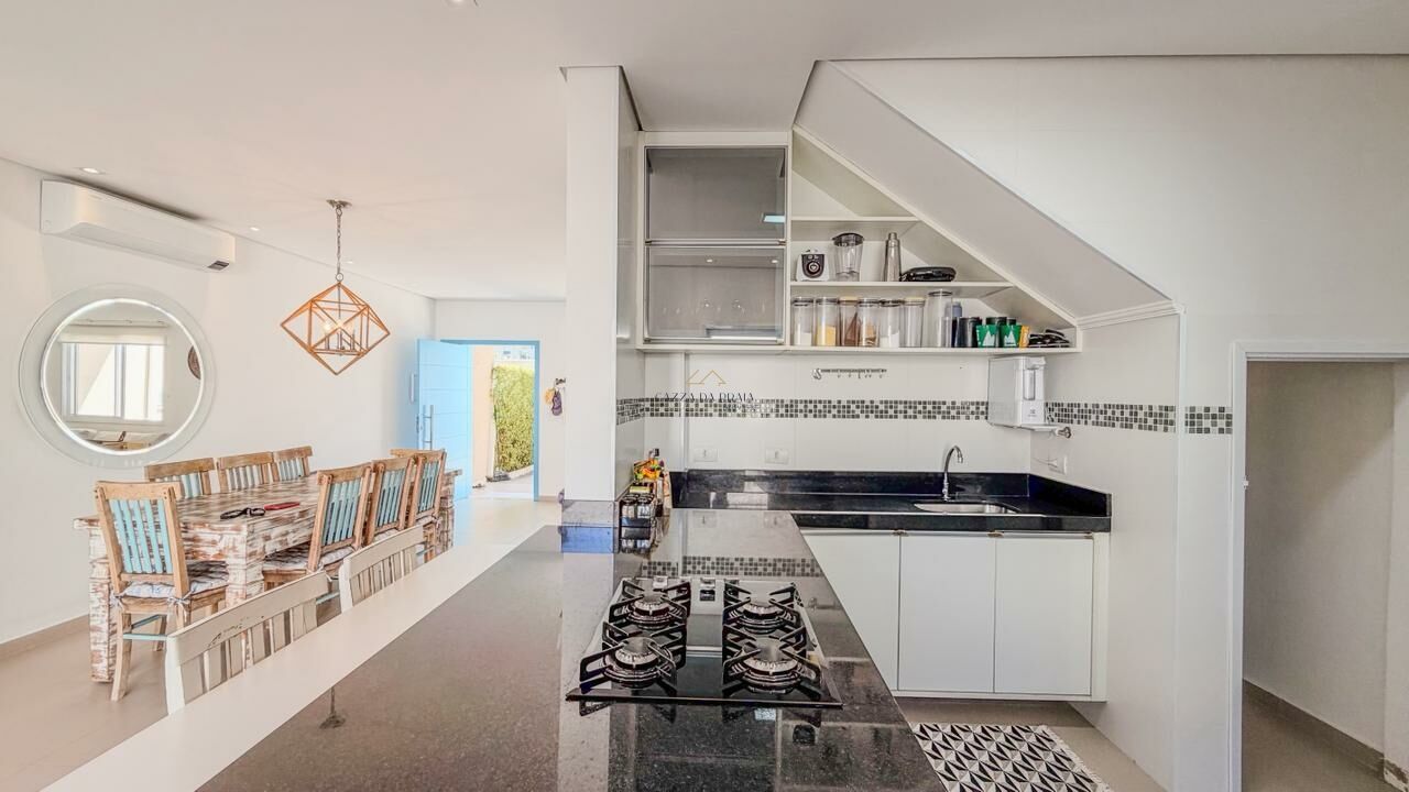 Totalmente mobiliada (porteira fechada), a residência dispõe ainda de duas vagas de garagem. O condomínio oferece estrutura completa com caseiro, portão eletrônico, serviço de praia e vigilância 24 horas, garantindo segurança e comodidade.