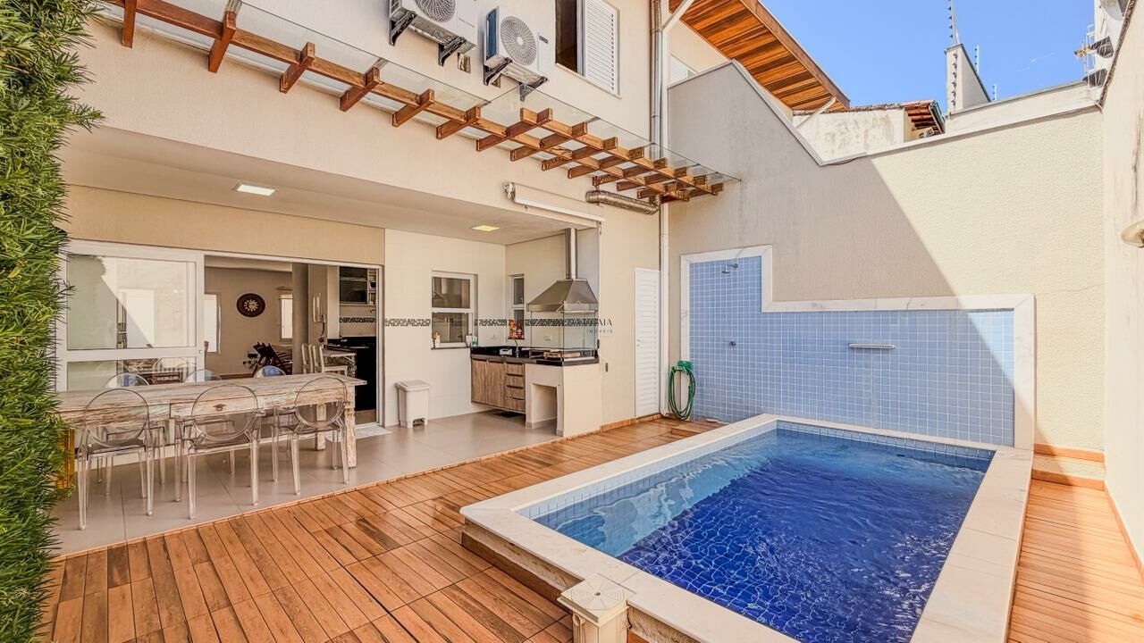 O imóvel conta com quatro suítes bem distribuídas, salas integradas em três ambientes e cozinha funcional, além de lavabo e área de serviço com lavanderia e despensa. Na área externa, a piscina privativa e o espaço gourmet com churrasqueira criam o ambiente ideal para momentos de lazer e convivência.