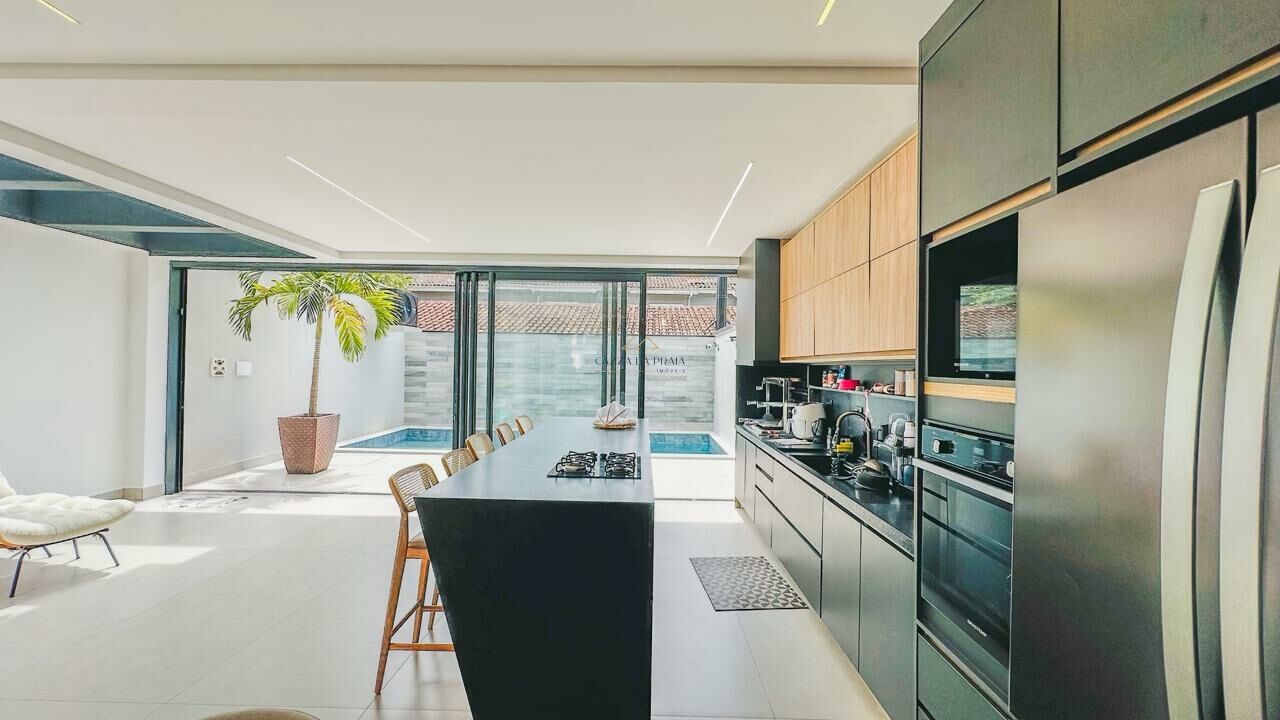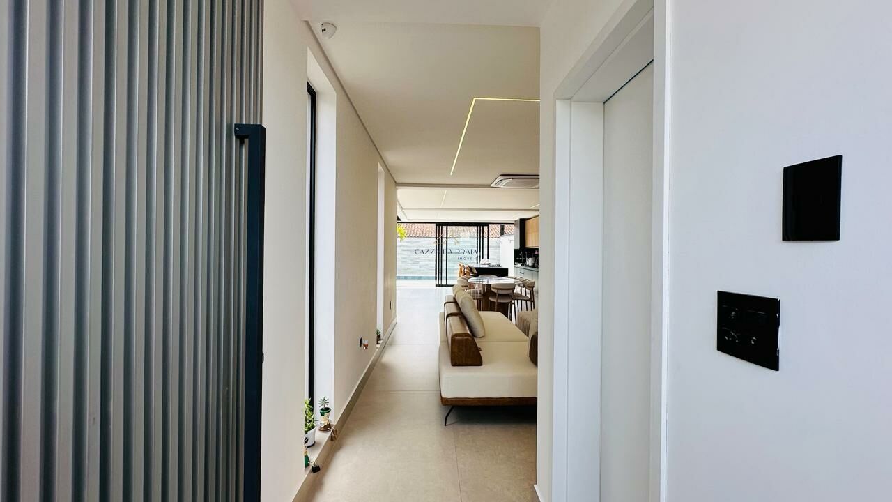 Na área externa, oferece piscina privativa aquecida, varanda gourmet com churrasqueira e um rooftop com jacuzzi, perfeito para momentos de lazer. A casa é vendida totalmente mobiliada e decorada, pronta para uso imediato.
