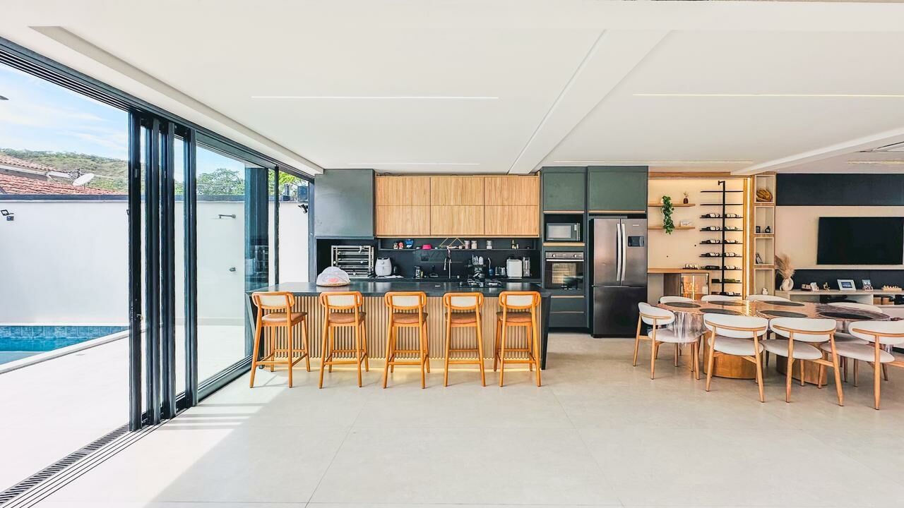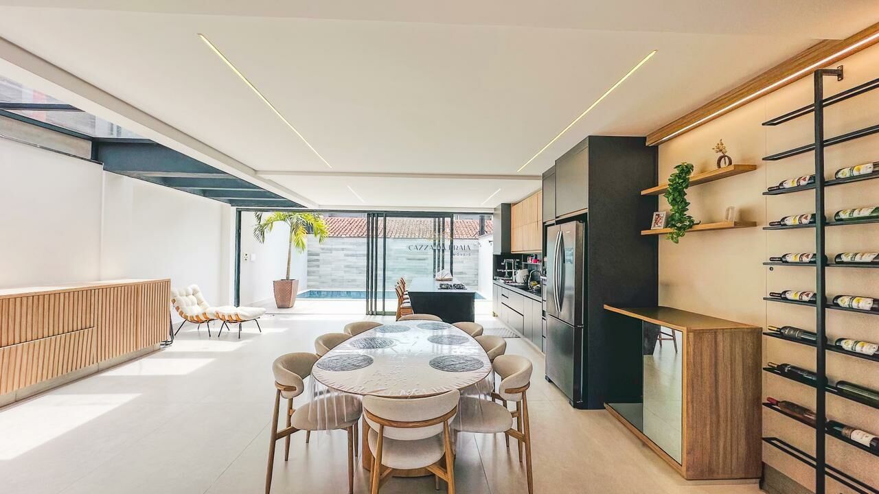 O imóvel conta com 4 suítes amplas, salas integradas em três ambientes (estar, jantar e TV), lavabo, adega e cozinha com ilha e claraboia, garantindo ótima iluminação natural. Ambientes bem distribuídos, climatizados e com acabamento de alto padrão.