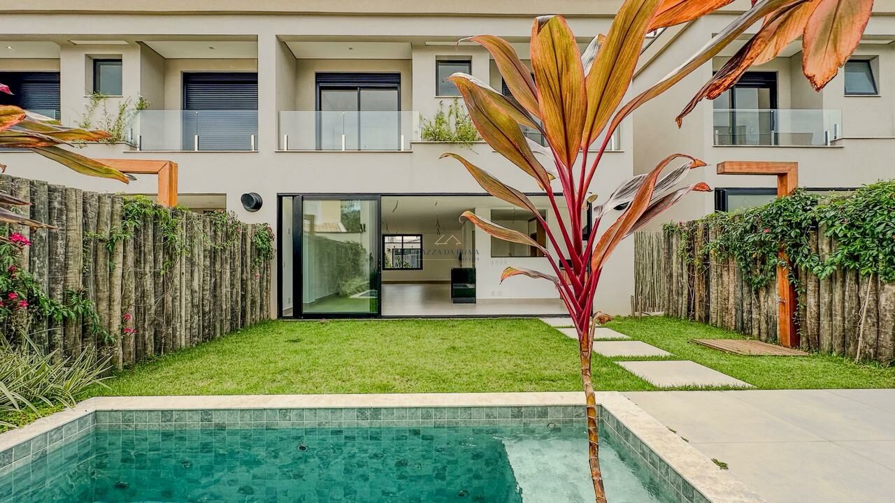 A área externa conta com varanda, espaço gourmet com churrasqueira, piscina privativa e jardim, criando o cenário ideal para momentos de lazer e recepção. O imóvel ainda possui lavabo, agregando praticidade ao dia a dia.