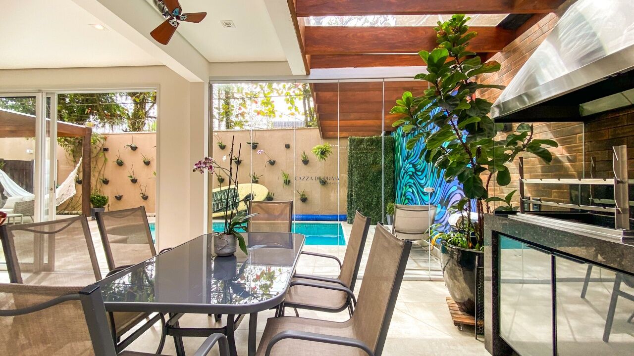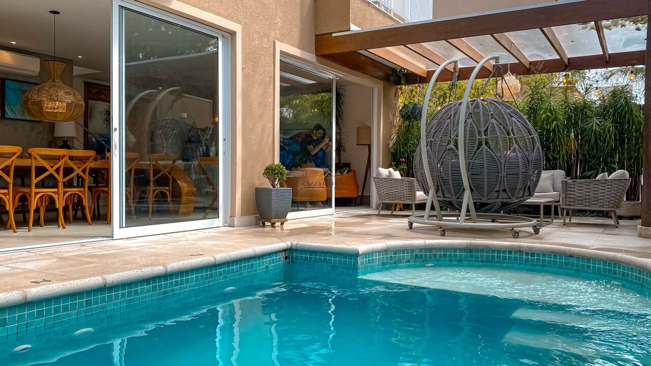 Na área externa, o lazer é completo e privativo, com churrasqueira e piscina, ideal para momentos de descanso e convivência. O imóvel dispõe ainda de vagas de garagem para até 3 veículos, garantindo comodidade no dia a dia.