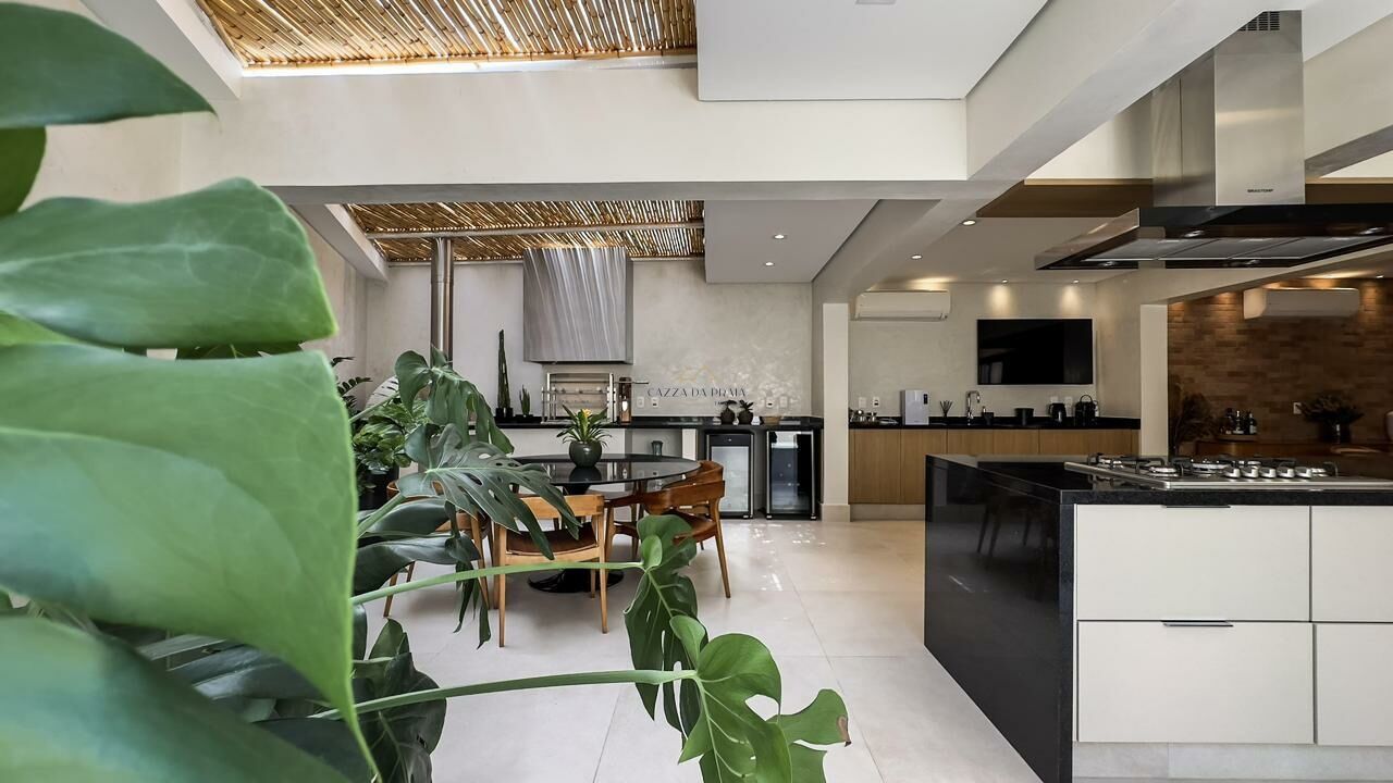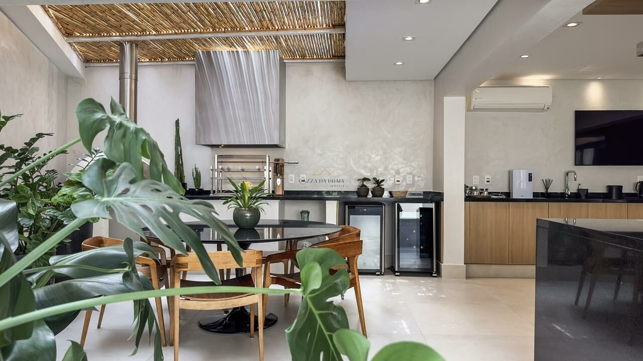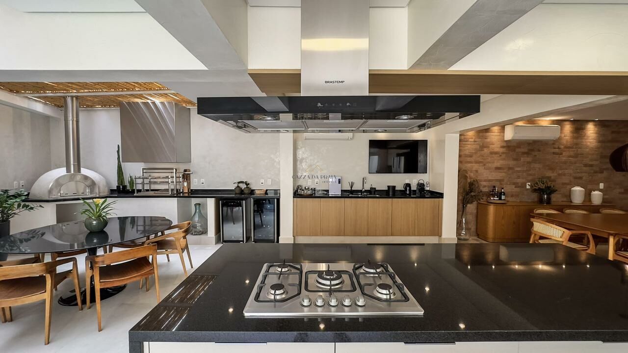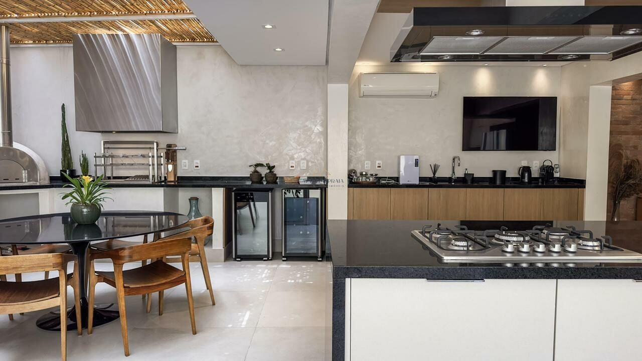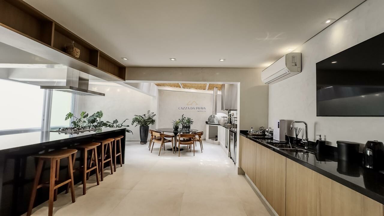 A área externa conta com espaço gourmet completo, churrasqueira e forno de pizza, ideal para momentos de lazer. O condomínio oferece piscina, jardins, zeladoria e portaria 24 horas, garantindo segurança e tranquilidade em um dos endereços mais desejados do litoral norte.