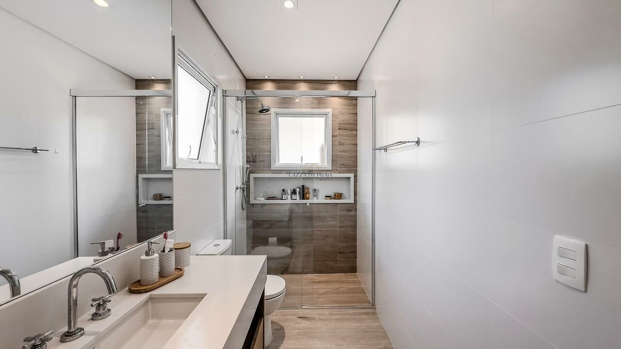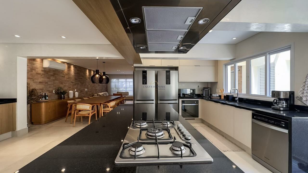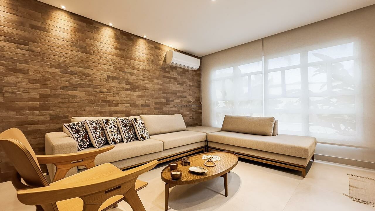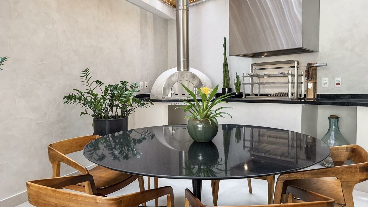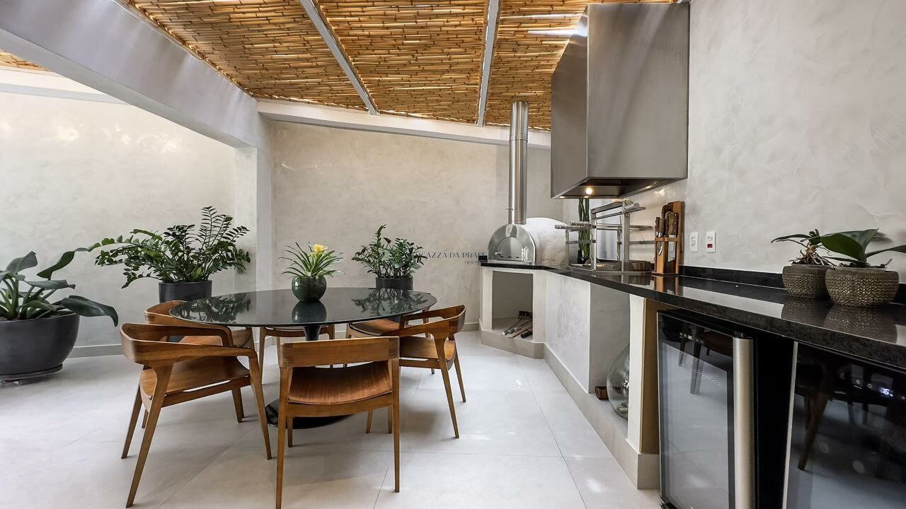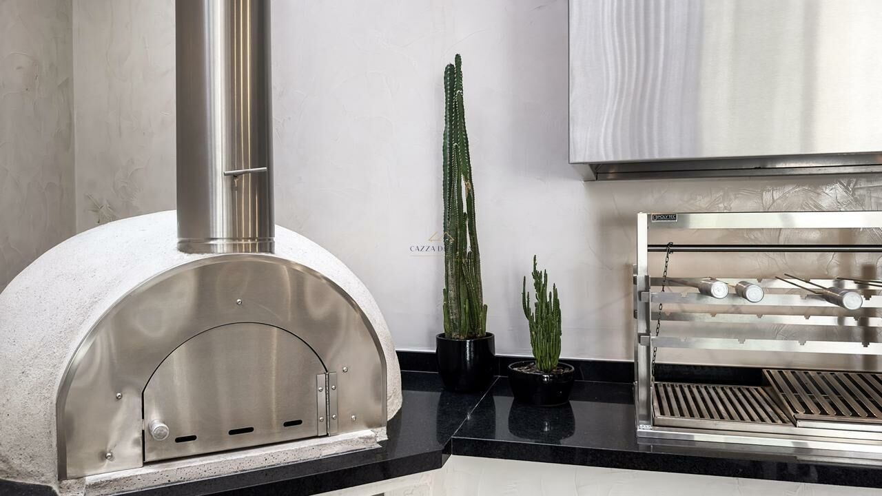 A área externa conta com espaço gourmet completo, churrasqueira e forno de pizza, ideal para momentos de lazer. O condomínio oferece piscina, jardins, zeladoria e portaria 24 horas, garantindo segurança e tranquilidade em um dos endereços mais desejados do litoral norte.