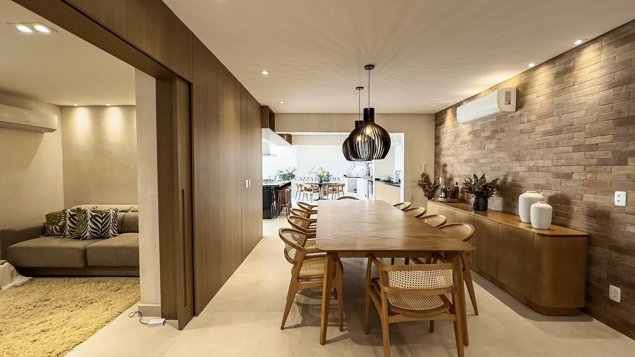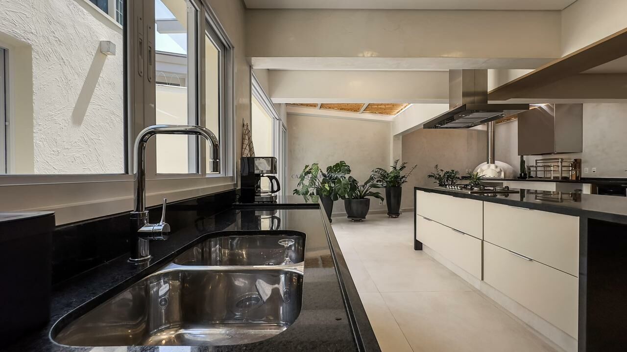 A casa possui 250 m² de área construída em um terreno de 350 m², com 3 dormitórios, sendo 2 suítes com sacadas privativas. Os ambientes sociais são amplos e integrados, com sala em 4 ambientes e cozinha gourmet em dois espaços, proporcionando conforto e sofisticação para receber.
