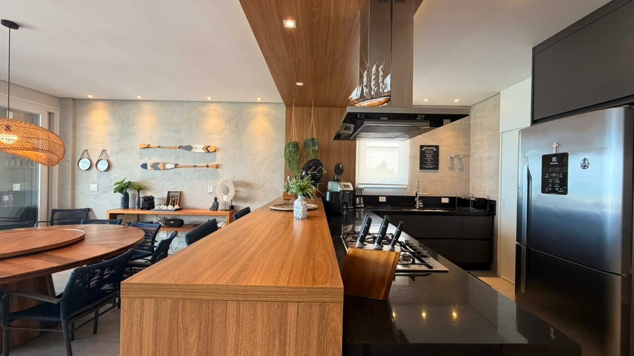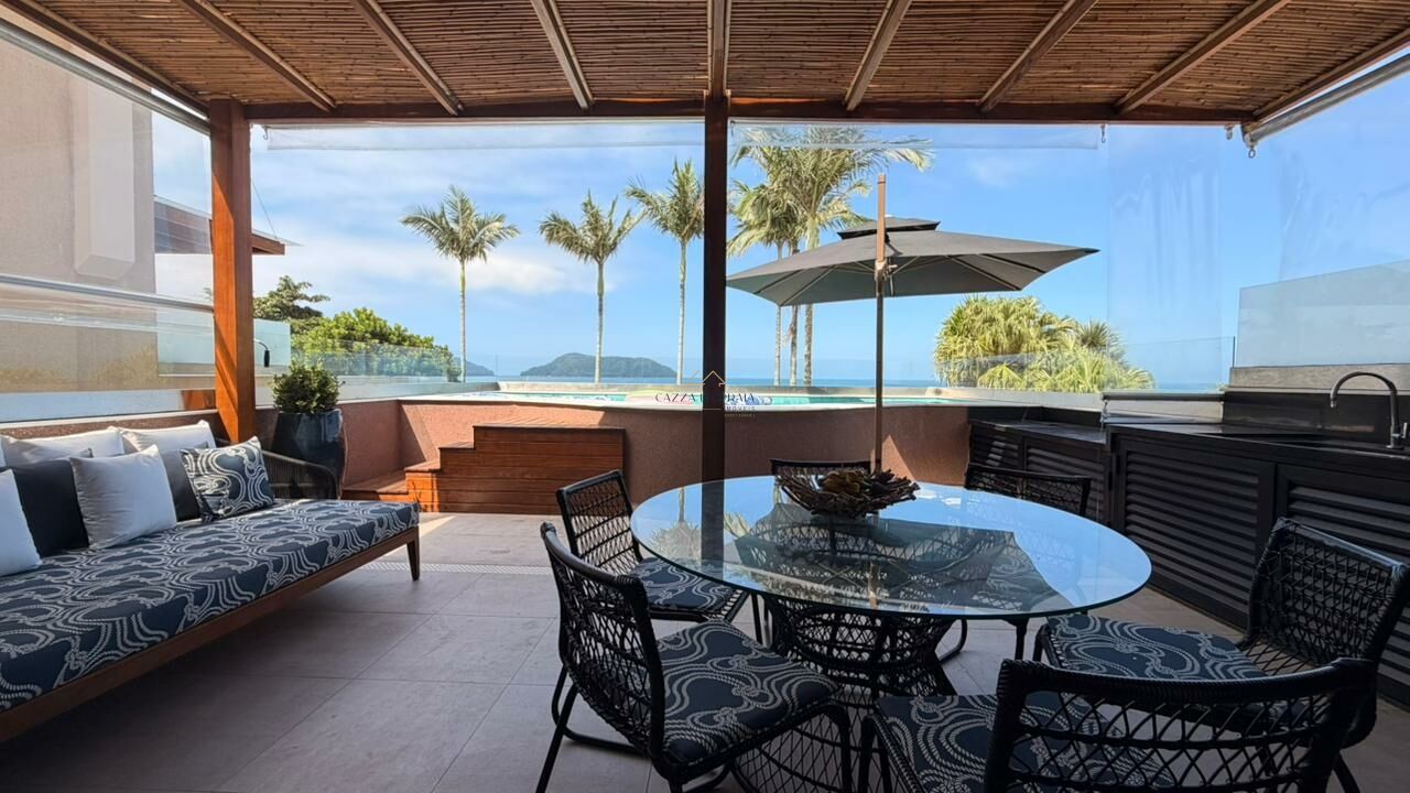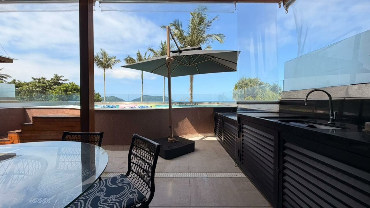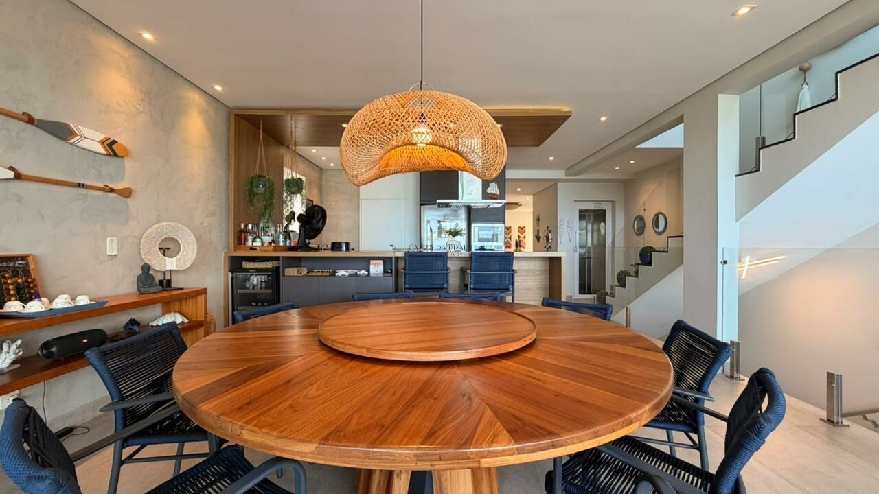 Com 5 suítes, closet e dependência de empregada, a residência conta com salas distribuídas em 3 ambientes e uma cozinha aberta que valoriza a integração dos espaços. A varanda com vista para o mar e o espaço gourmet com churrasqueira completam a experiência de viver e receber com estilo.