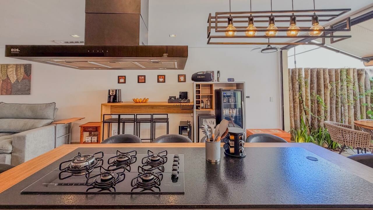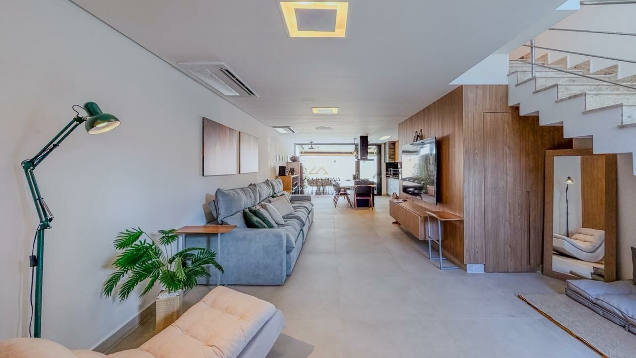 São 4 suítes, salas amplas em três ambientes, lavabo e cozinha com ilha integrada, criando um ambiente funcional e acolhedor. Totalmente mobiliada e pronta para uso, a casa oferece ainda 2 vagas de garagem e acabamentos que valorizam cada espaço.
