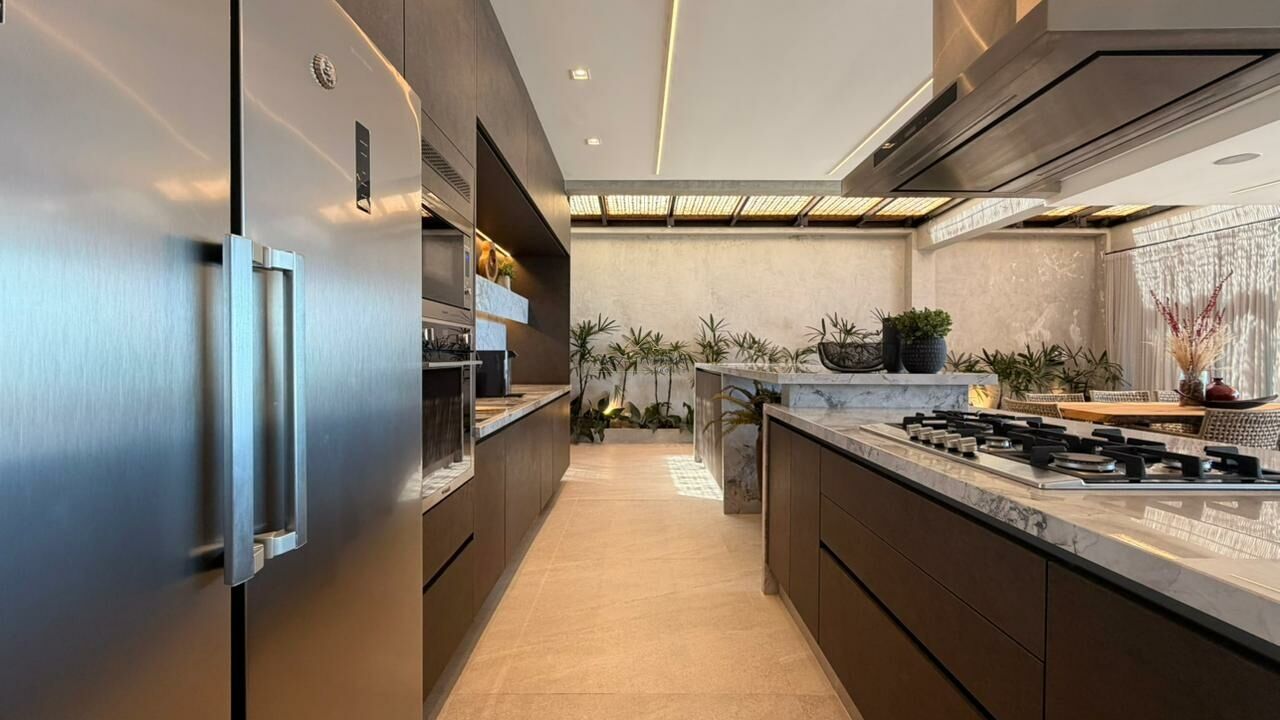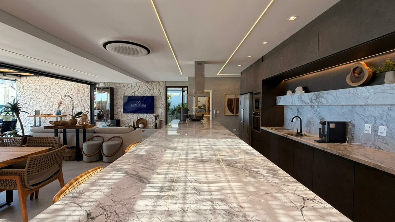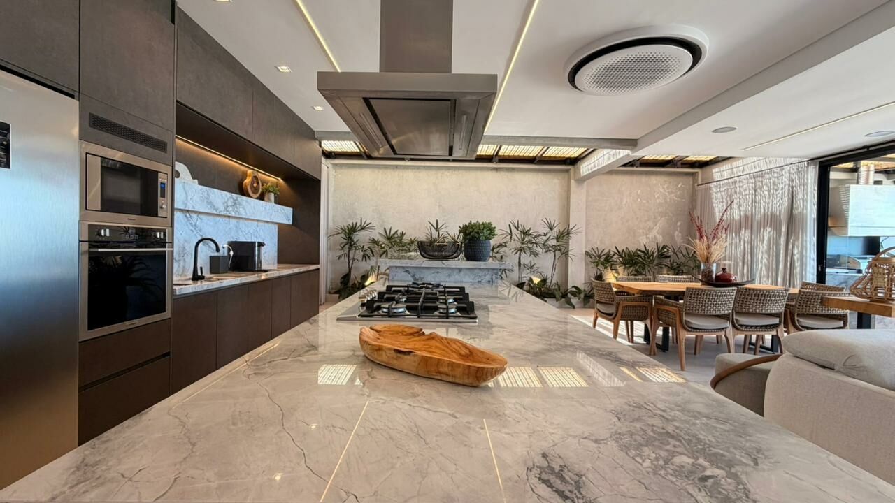 Com 5 suítes, closet e dependência de empregada, a residência conta com salas distribuídas em 3 ambientes e uma cozinha aberta que integra os espaços com elegância. A varanda com vista para o mar e o espaço gourmet com churrasqueira são perfeitos para viver e receber com estilo.