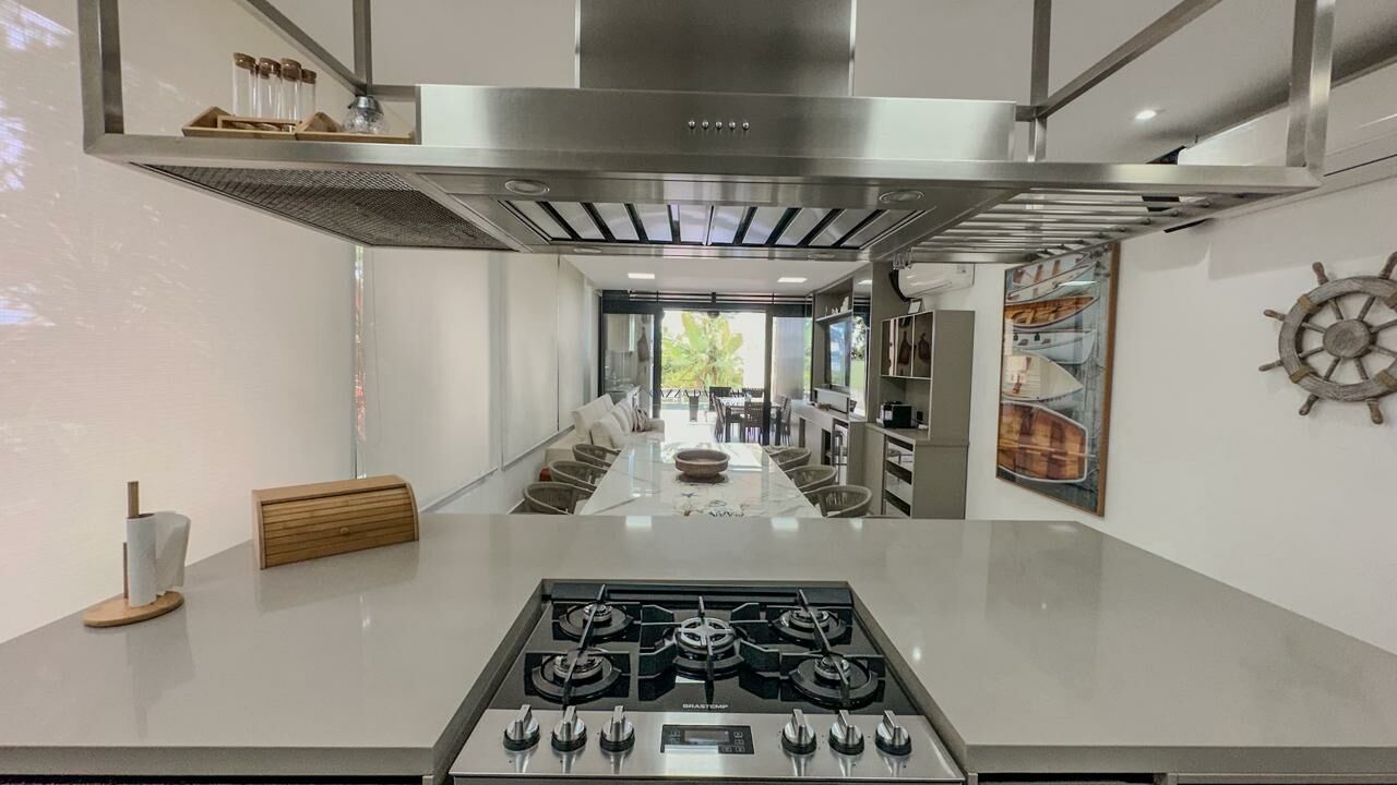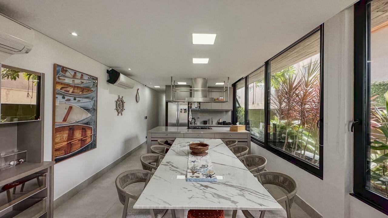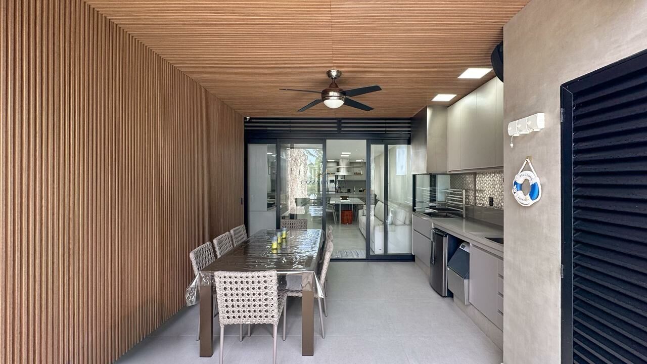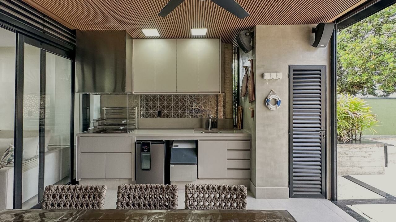 O imóvel conta com quatro suítes amplas, salas integradas em dois ambientes, cozinha americana com ilha e sala de almoço, além de uma varanda gourmet com churrasqueira que se conecta perfeitamente aos espaços internos. A área externa dispõe de piscina privativa e lavabo de apoio, além de lavabo interno para maior comodidade.