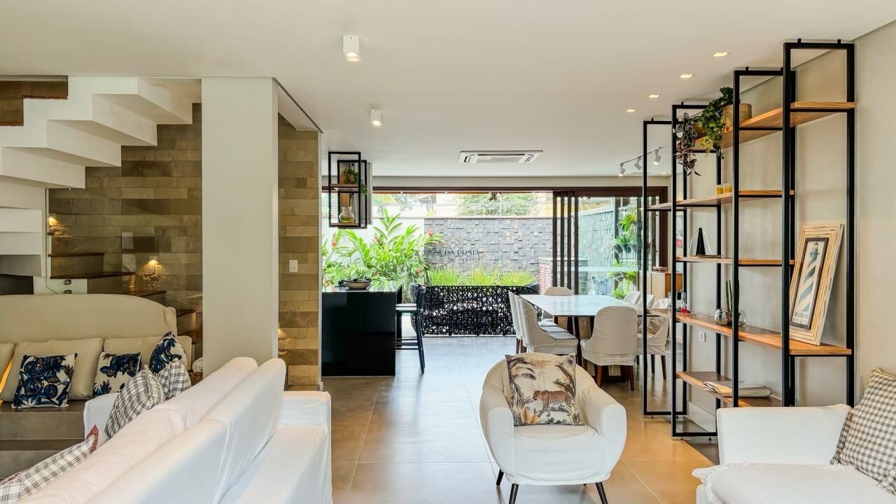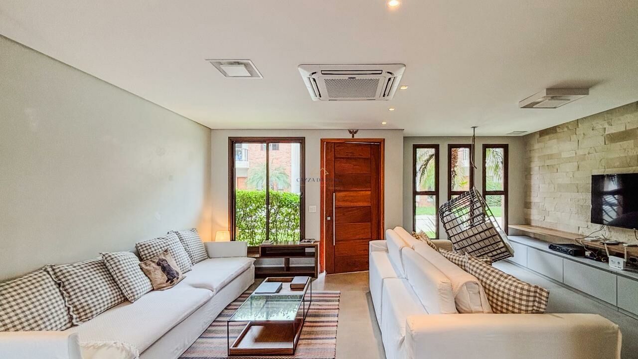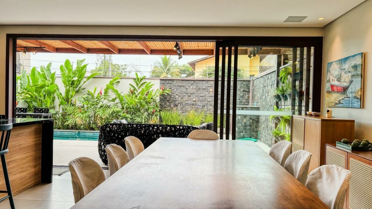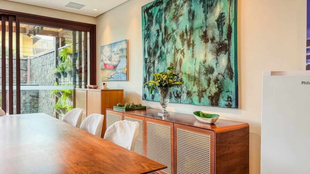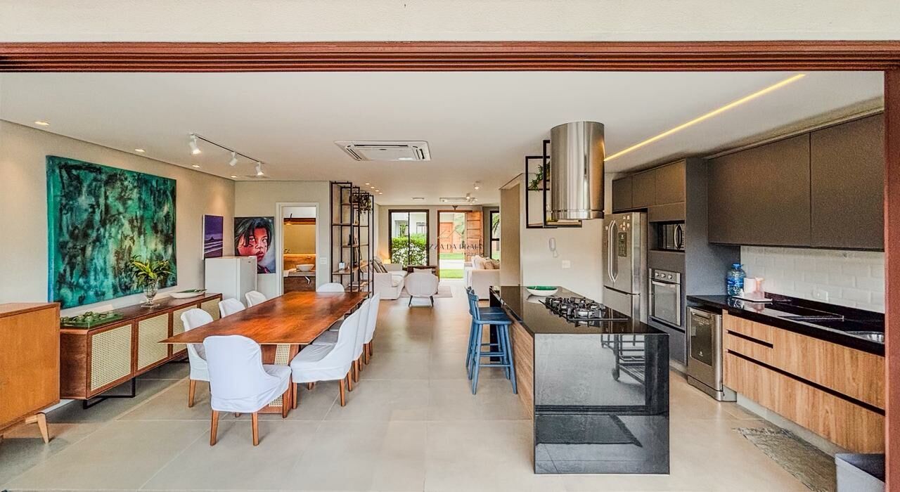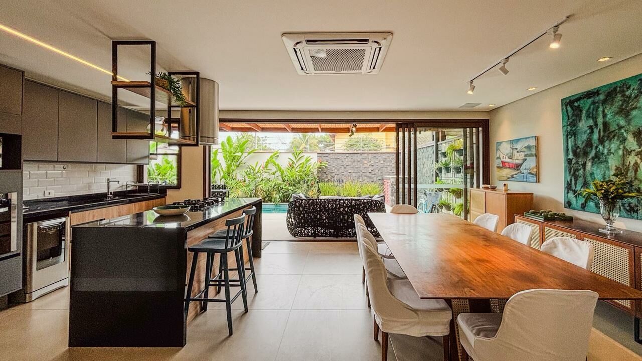 A residência conta com cinco suítes, salas amplas em três ambientes e lavabo, além de ar-condicionado em todos os cômodos. Totalmente mobiliada, está pronta para uso, ideal para quem busca praticidade e um imóvel pronto para aproveitar desde o primeiro dia.