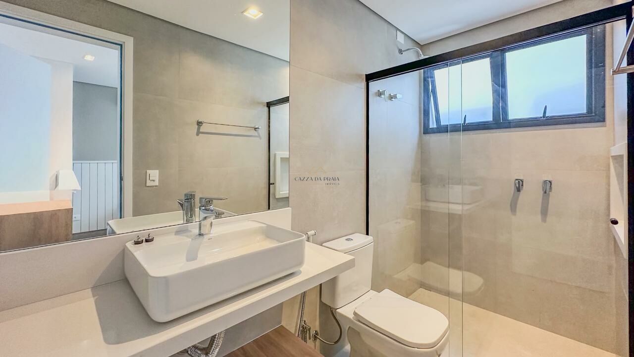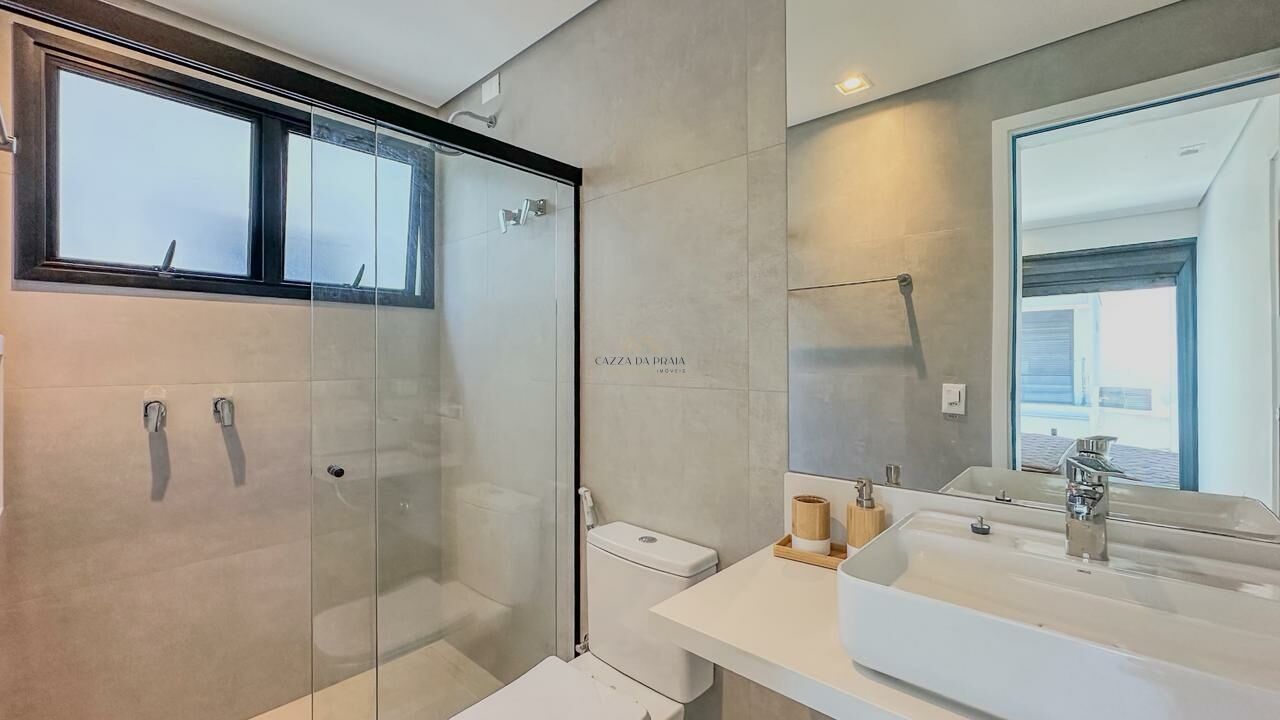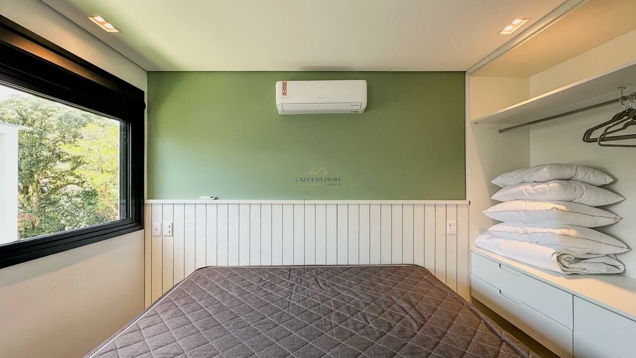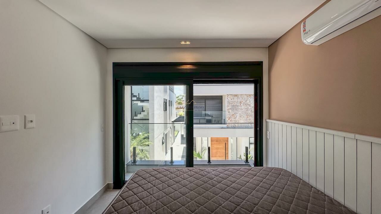 No piso superior, há uma sala adicional, rooftop com vista para as montanhas e sauna. O imóvel conta ainda com energia solar, persianas automatizadas, infraestrutura para ar-condicionado, carregamento para veículo elétrico, três vagas de garagem e segurança 24 horas em condomínio com portaria e guarita.