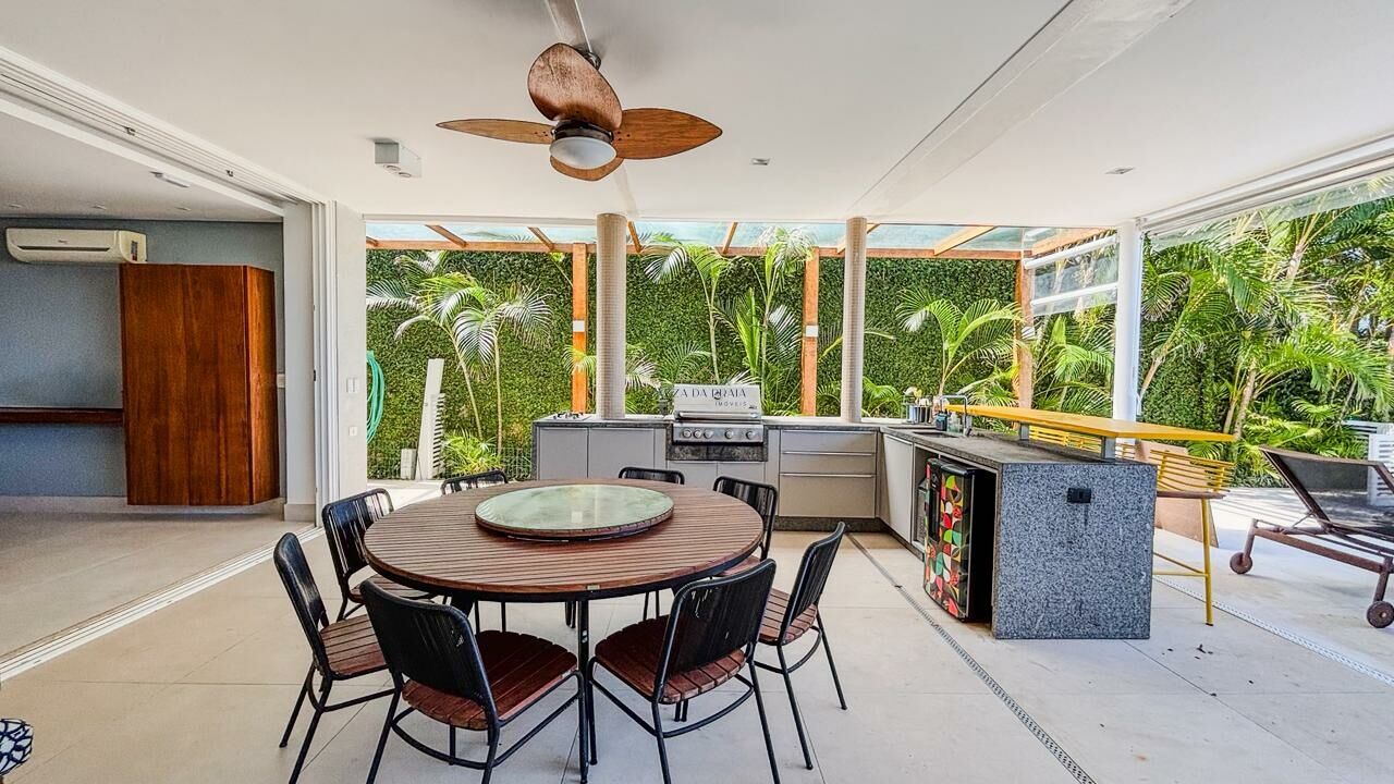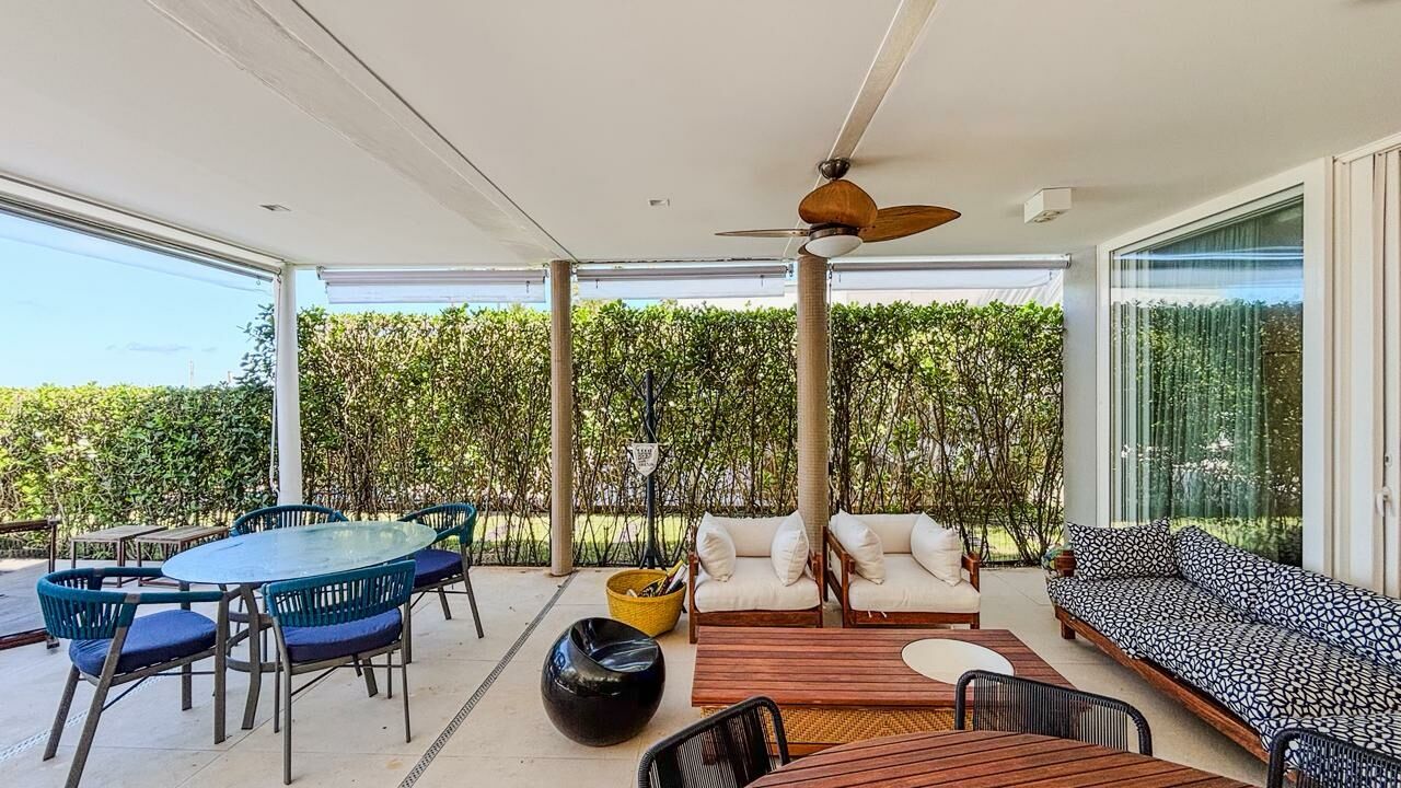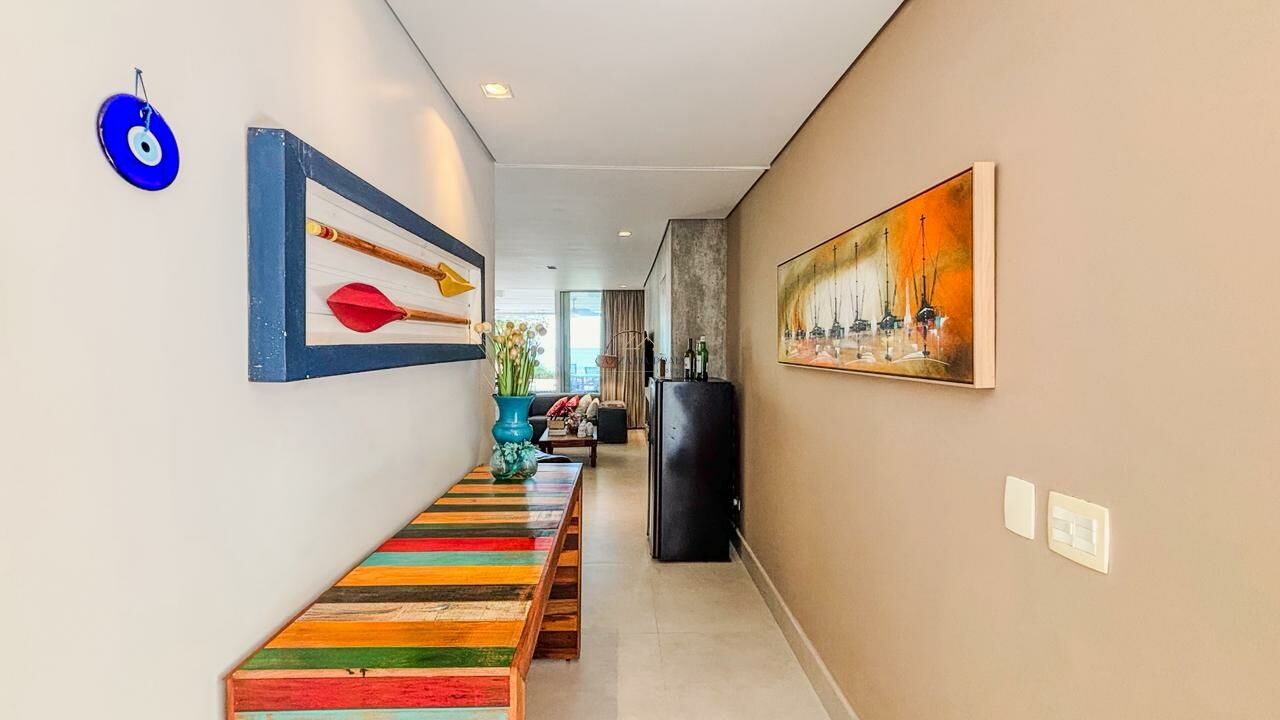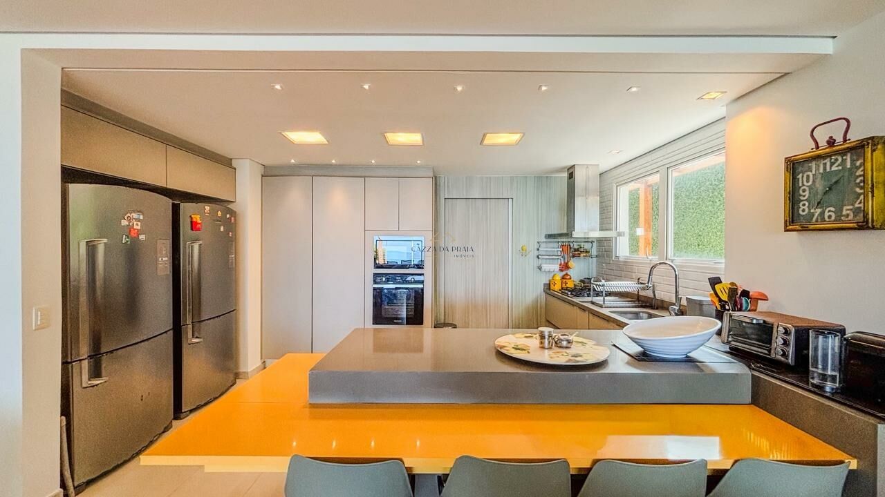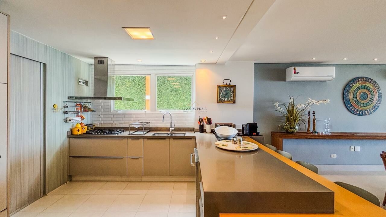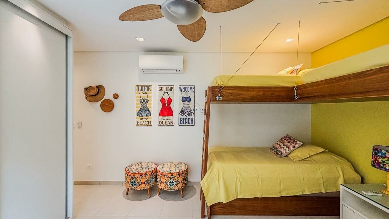 Na área externa, a varanda com churrasqueira e a piscina privativa convidam ao relaxamento com vista para o mar. O condomínio oferece serviço de praia, portaria 24 horas, zeladoria e um amplo jardim gramado de frente para o oceano, garantindo segurança, comodidade e qualidade de vida.