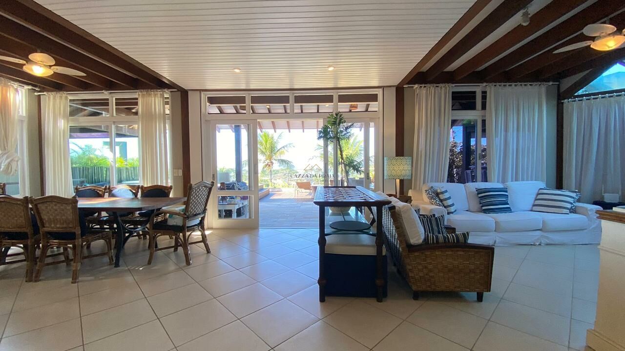 O imóvel dispõe de 5 suítes, sendo 2 com closet e uma suíte com vista direta para o mar. A área social impressiona com sala monumental em quatro ambientes, integrada à cozinha gourmet, todos os espaços climatizados e com móveis planejados de alto padrão.