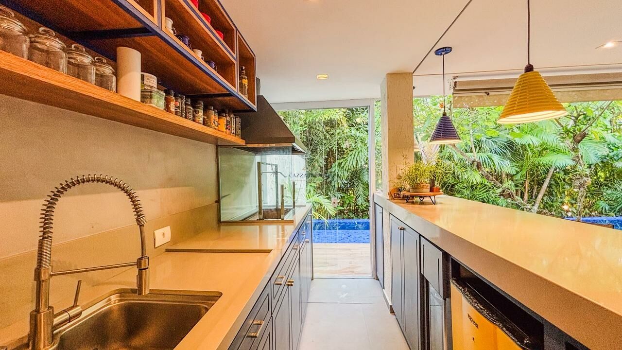 São 5 suítes, sendo uma no térreo, além de salas integradas em três ambientes, cozinha funcional, escritório e áreas de apoio completas. A área externa convida ao convívio com um espaço gourmet bem equipado, ideal para receber com charme e praticidade.