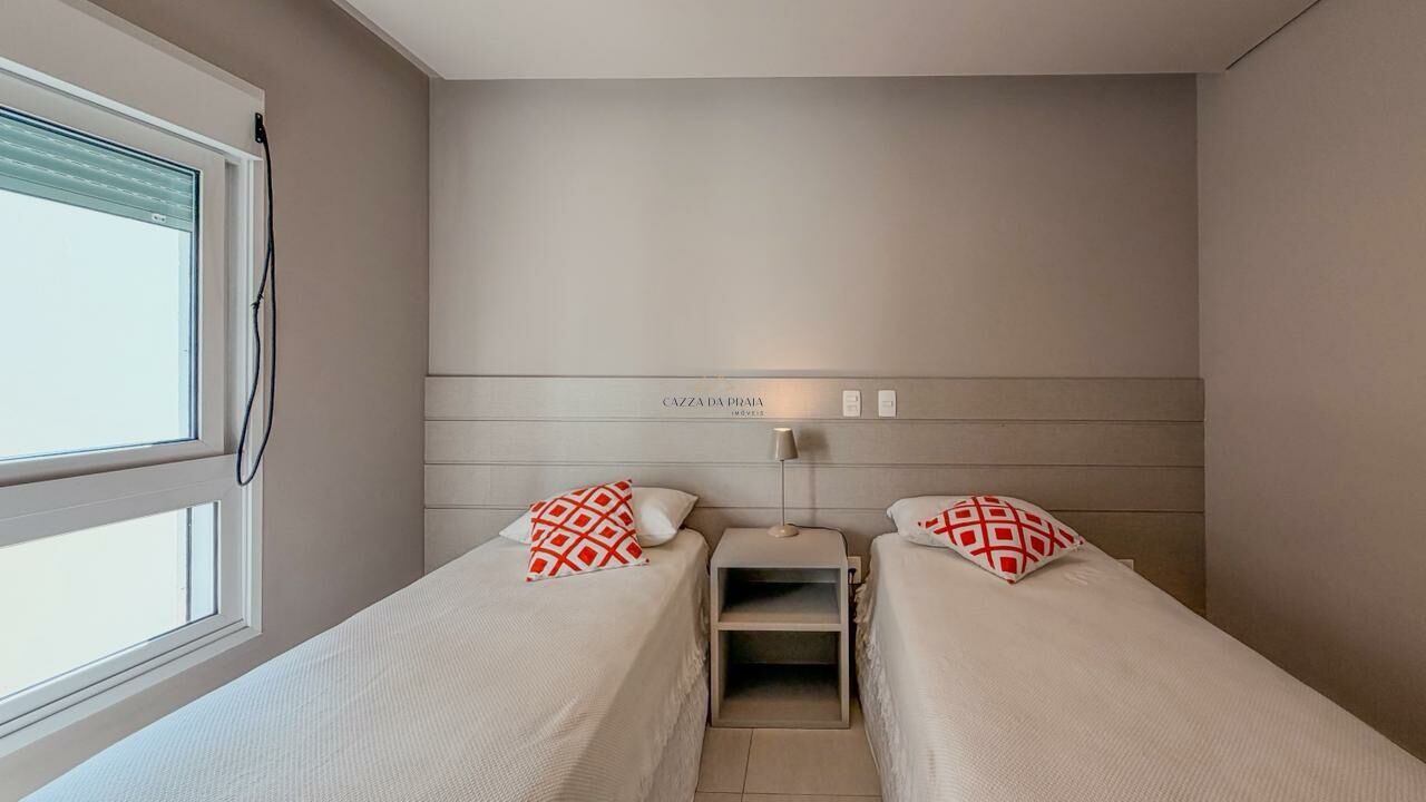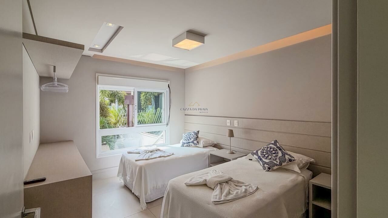 O condomínio oferece uma estrutura completa, com piscina com raia de 15 metros, piscina infantil com prainhas, sauna úmida com vista para o mar, lounge com fogareiro frente mar, jardim, playground, gazebos e segurança com portaria 24 horas.