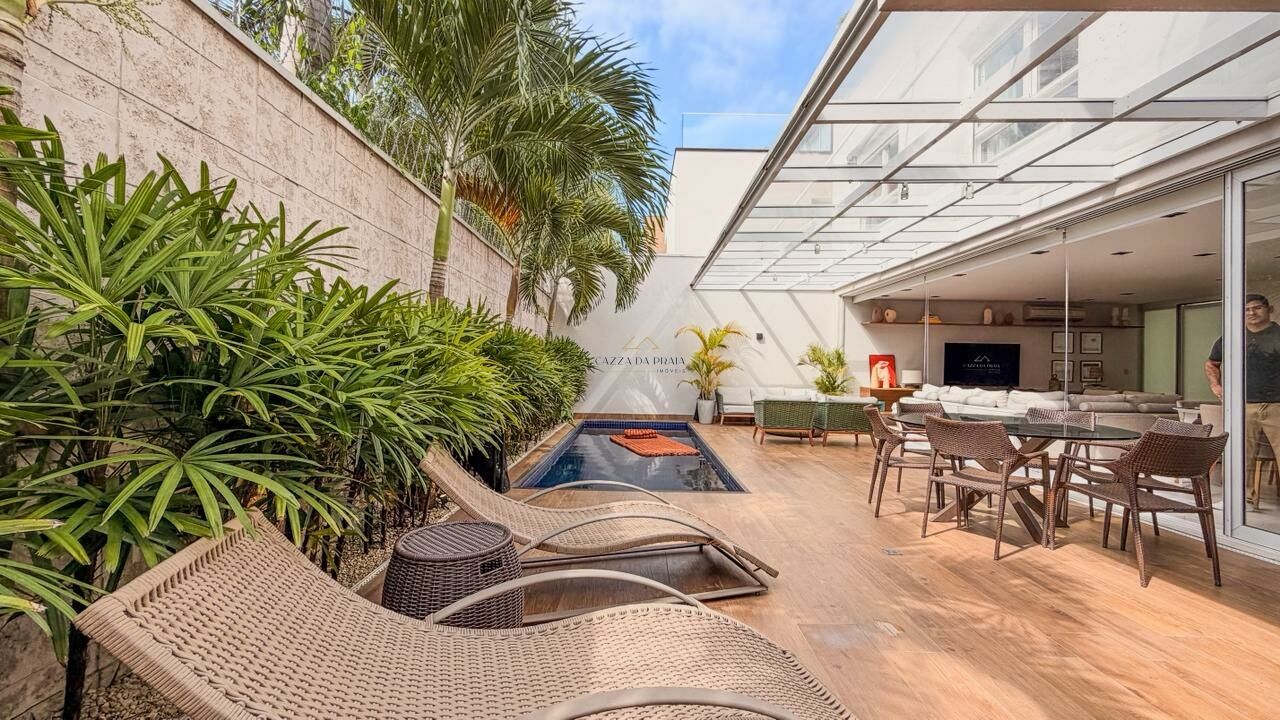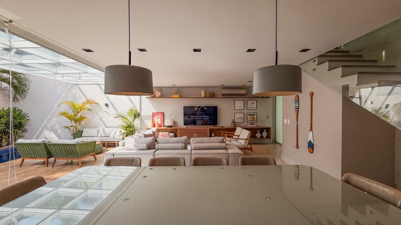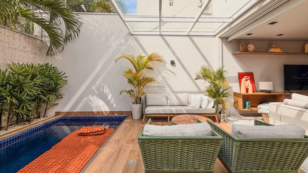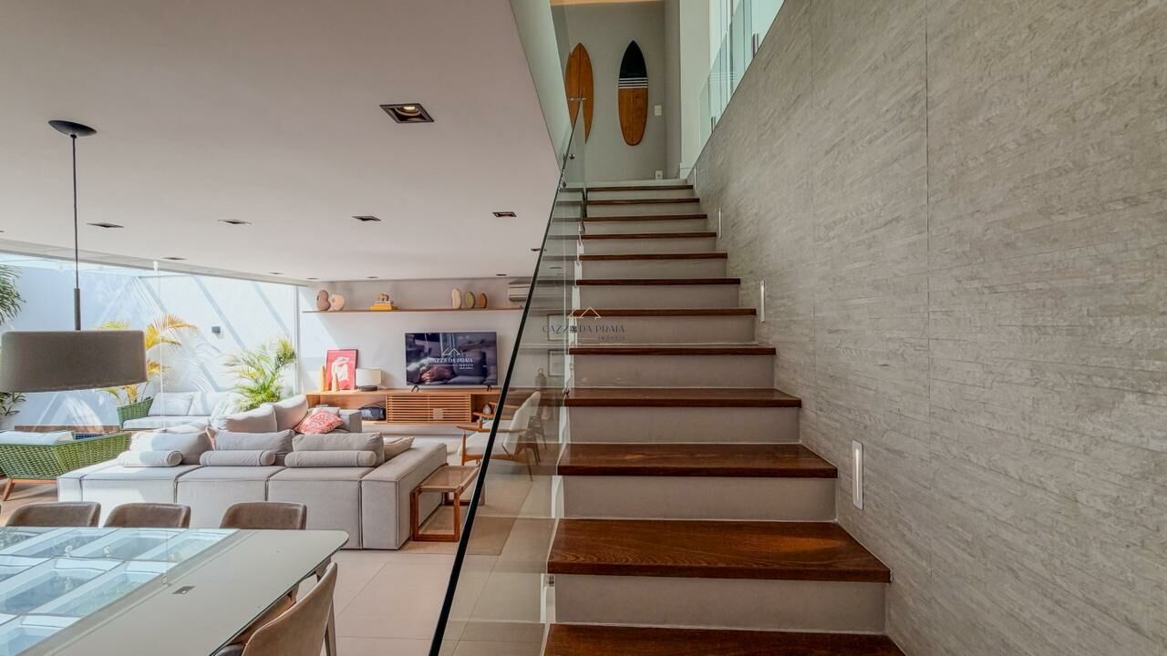 Casa em condomínio pé na areia na Praia de Juquehy, com 450 m² de área construída em um terreno de 300 m². Um projeto que une sofisticação e integração com a natureza, oferecendo uma experiência única à beira-mar, com rooftop equipado e vista panorâmica para o mar e as montanhas.