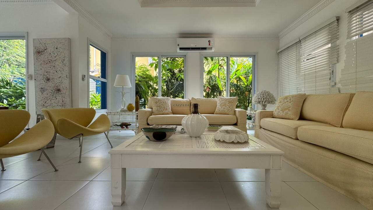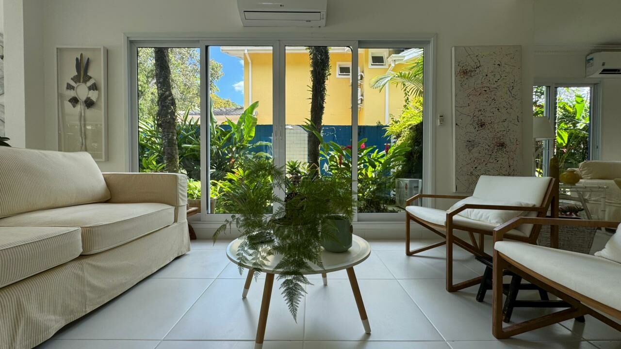A área social integra salas de estar, jantar e TV, conectadas ao jardim por amplas aberturas. A casa conta com cozinha funcional, despensa, lavanderia, lavabo e 4 suítes confortáveis, ideais para receber família e convidados com total privacidade.