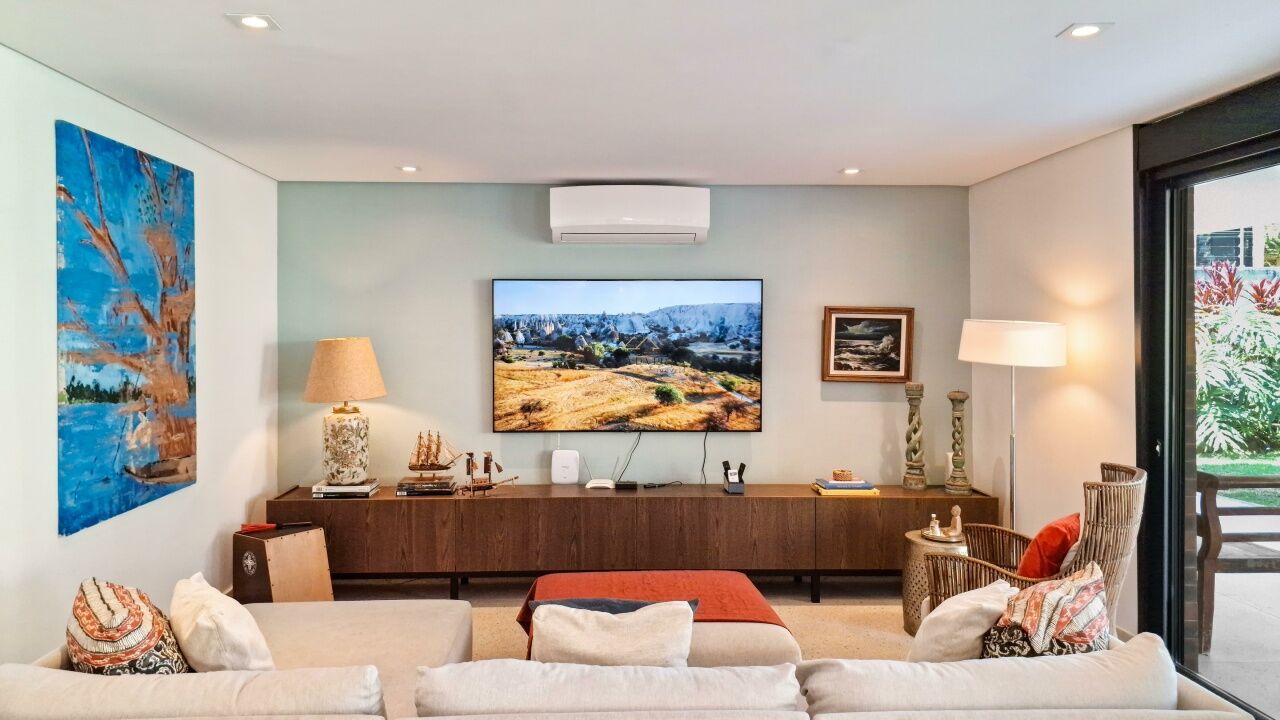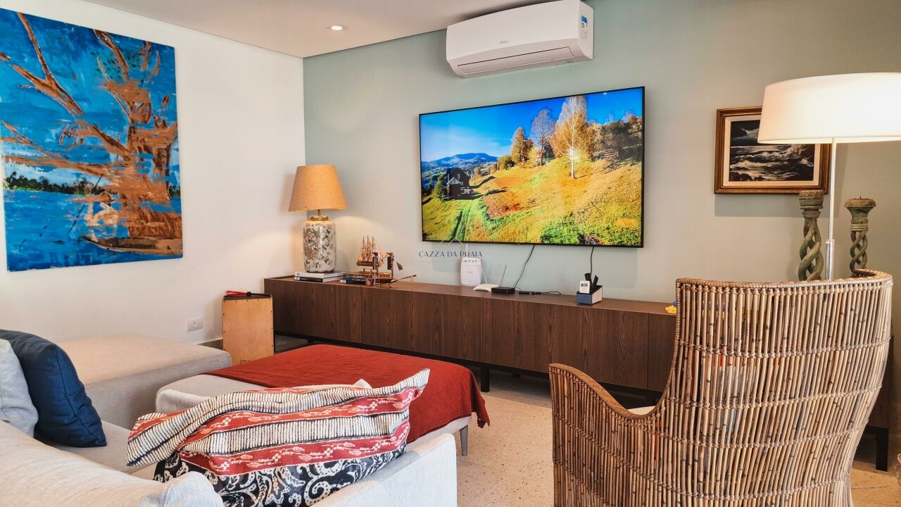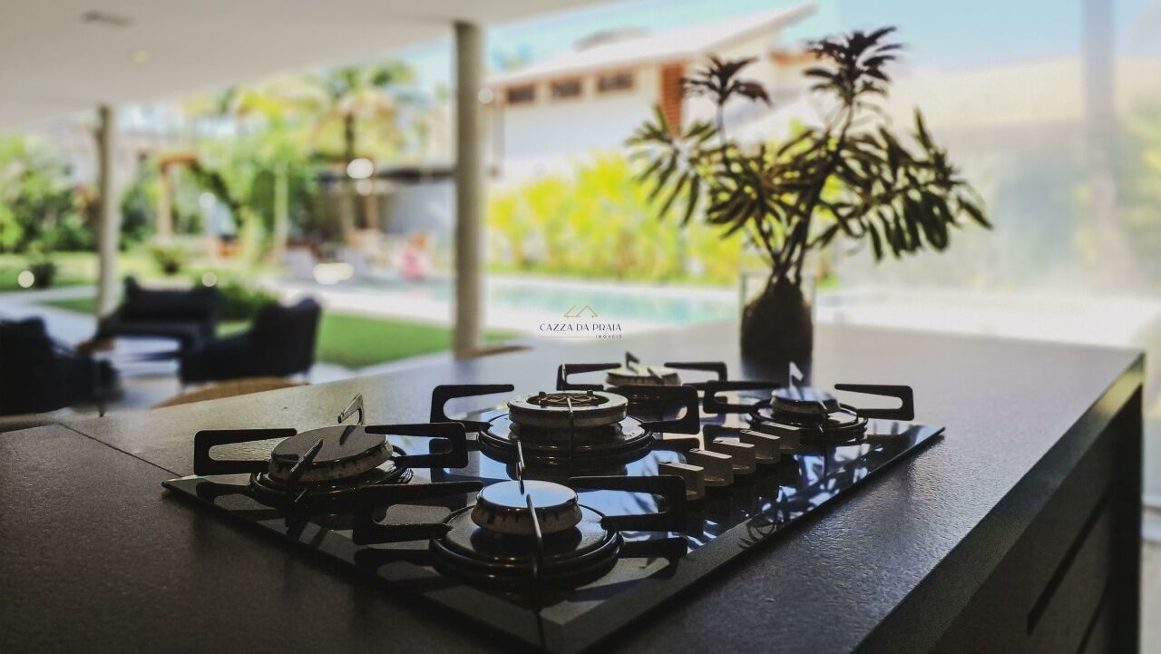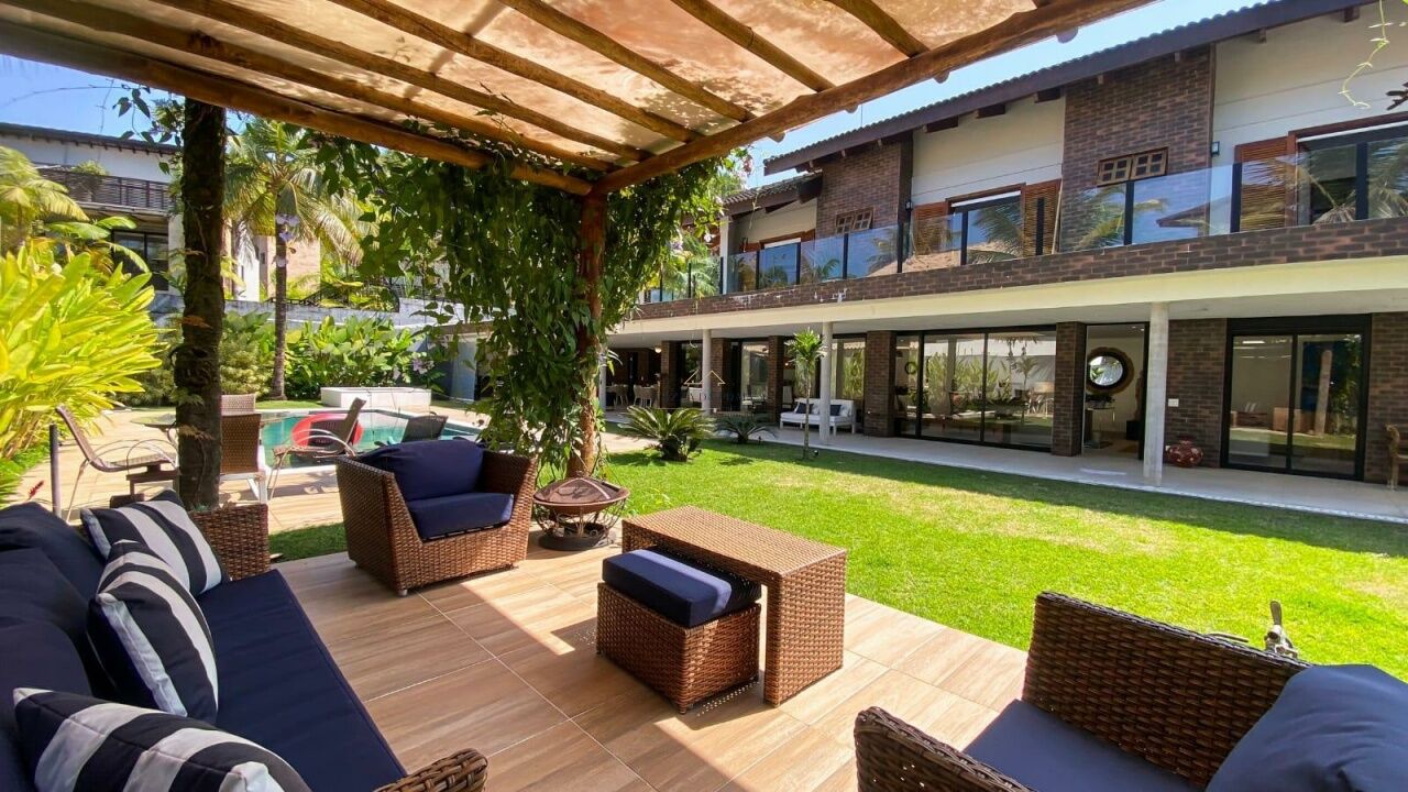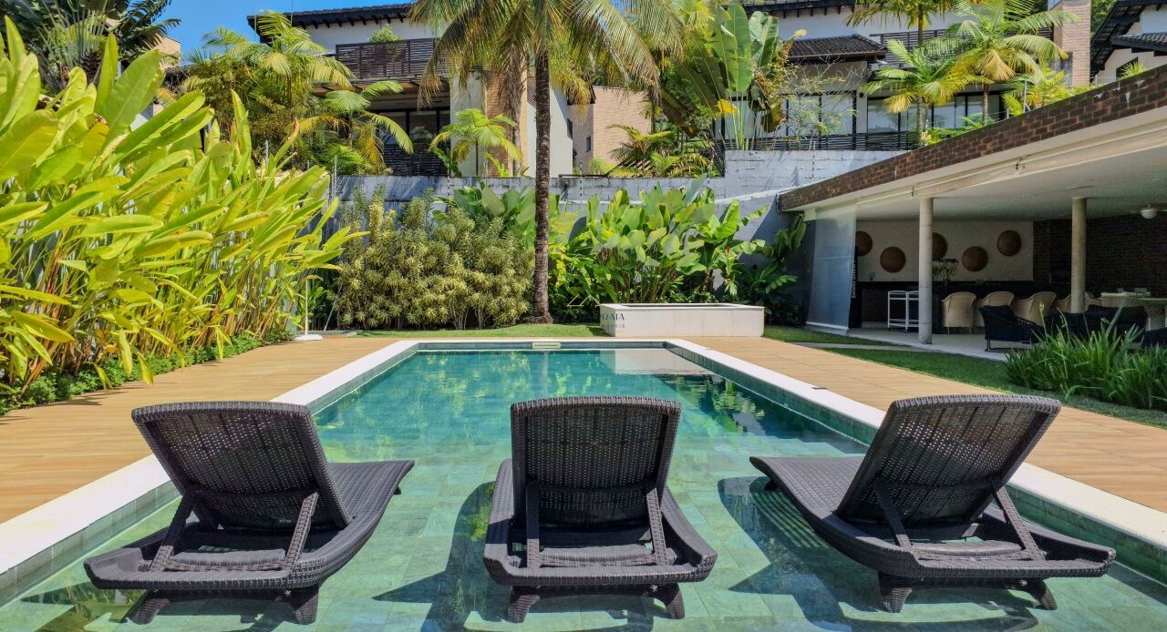 A área externa oferece piscina aquecida para adultos e crianças, solarium com pergolado e amplo quintal. Todos os ambientes são climatizados, com móveis planejados, acabamento premium e casa para caseiro.