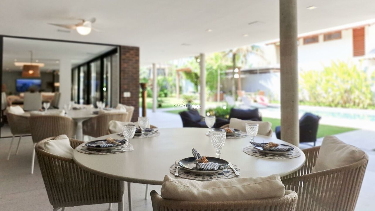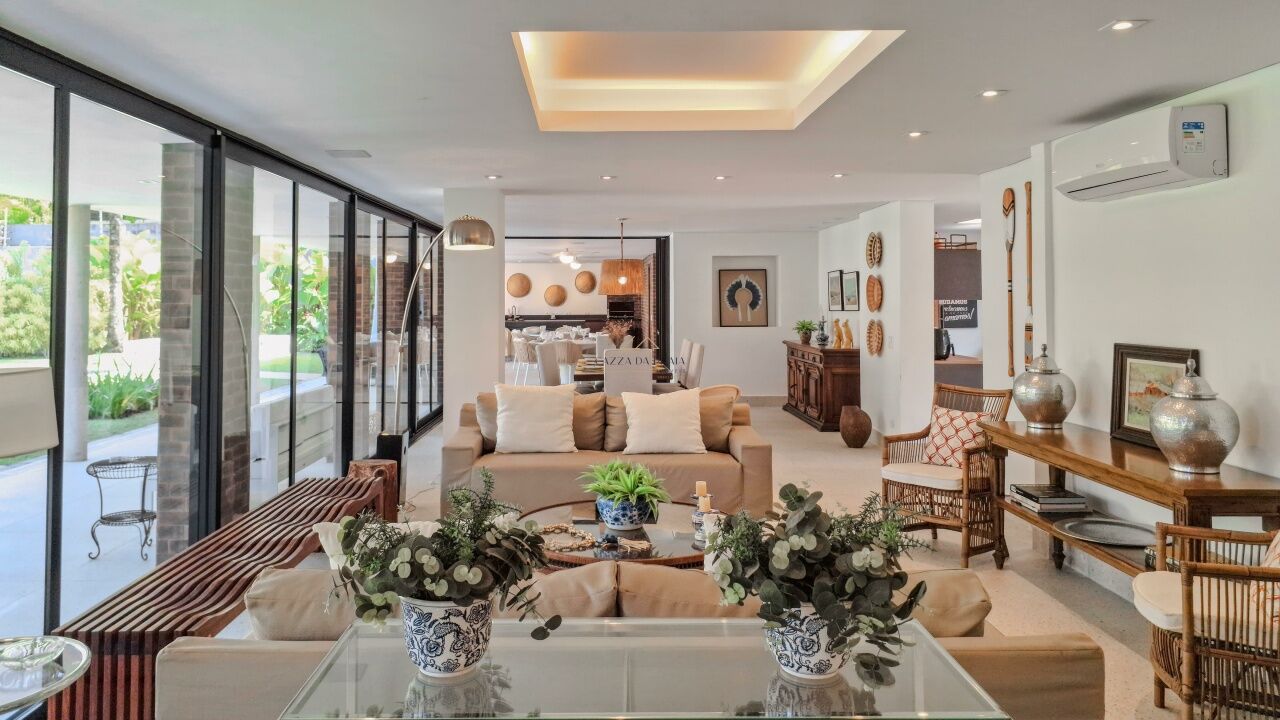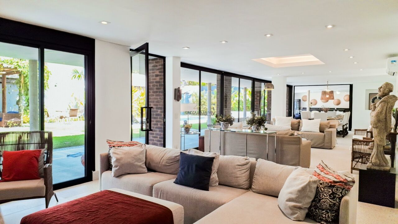 O imóvel dispõe de 5 suítes, dependência de empregada e living amplo integrado em seis ambientes, incluindo salas de estar, jantar, TV, jogos e leitura. Conta ainda com lavabo, cozinha gourmet e espaço gourmet com churrasqueira, ideal para receber com conforto e sofisticação.