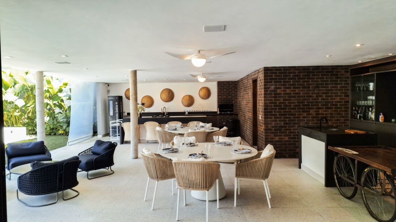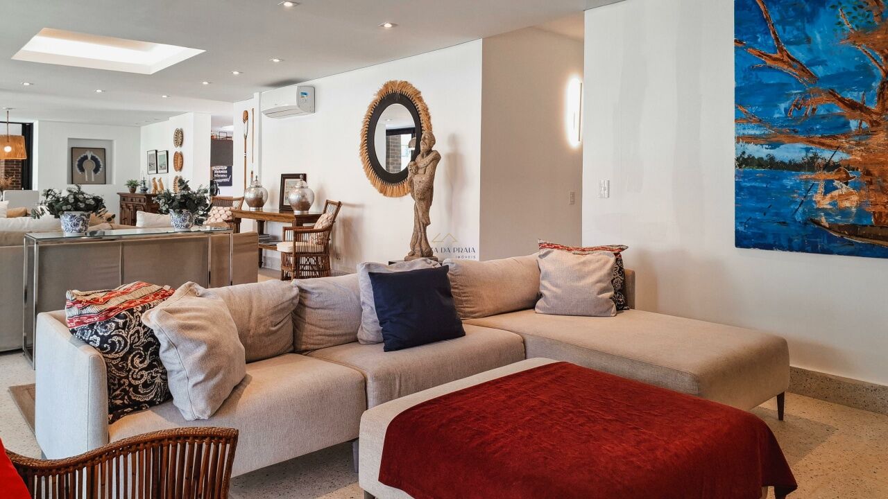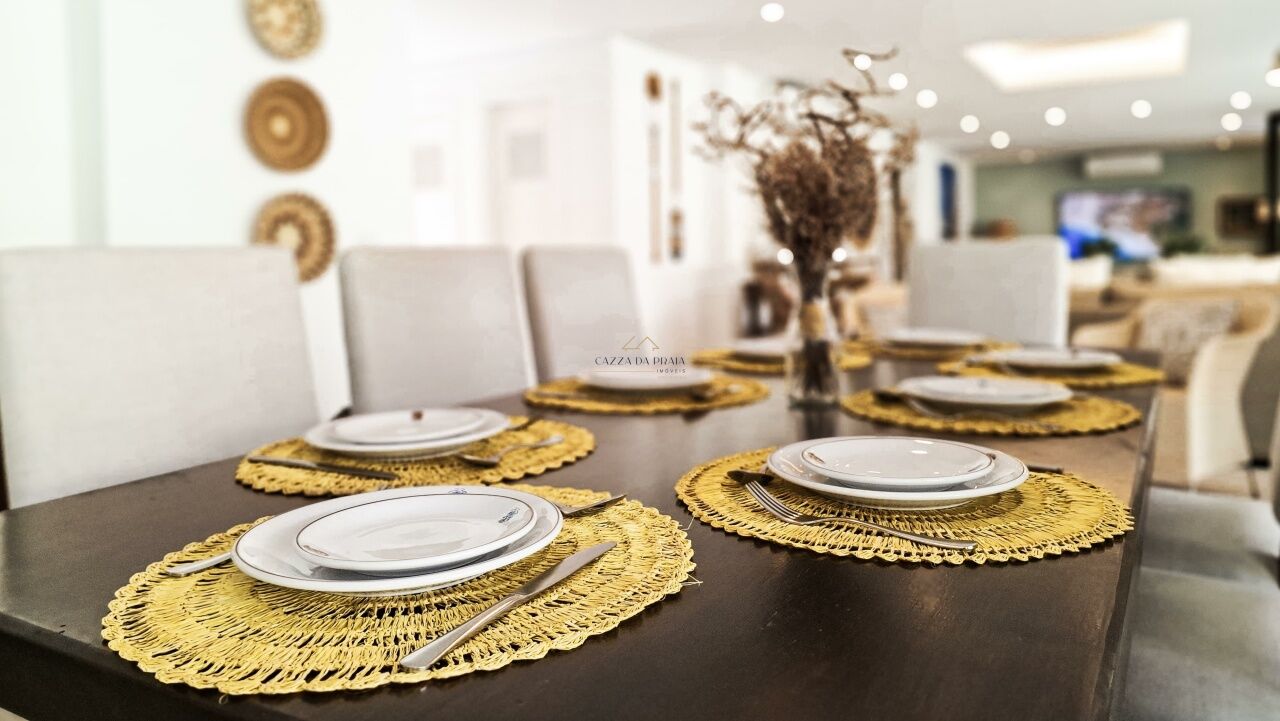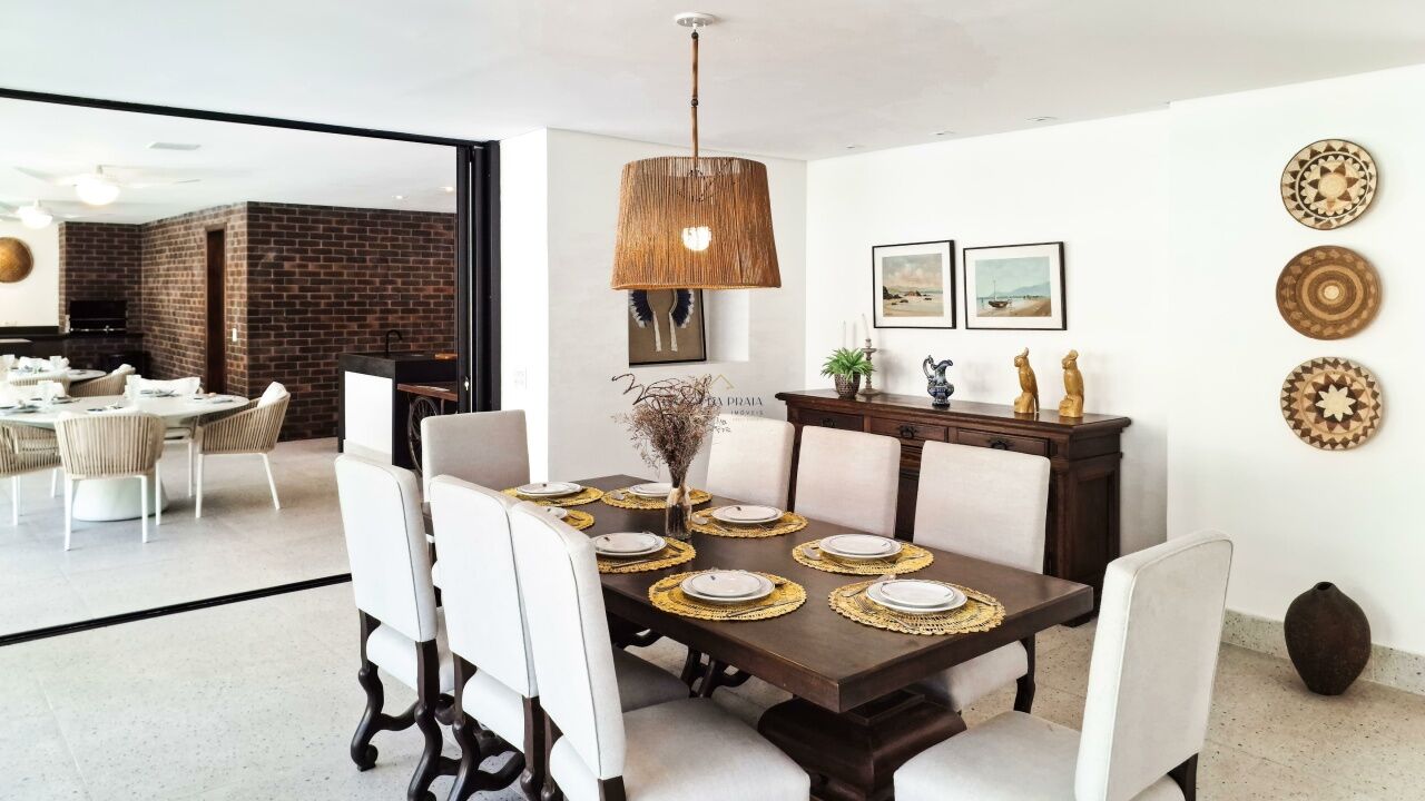 O imóvel dispõe de 5 suítes, dependência de empregada e living amplo integrado em seis ambientes, incluindo salas de estar, jantar, TV, jogos e leitura. Conta ainda com lavabo, cozinha gourmet e espaço gourmet com churrasqueira, ideal para receber com conforto e sofisticação.