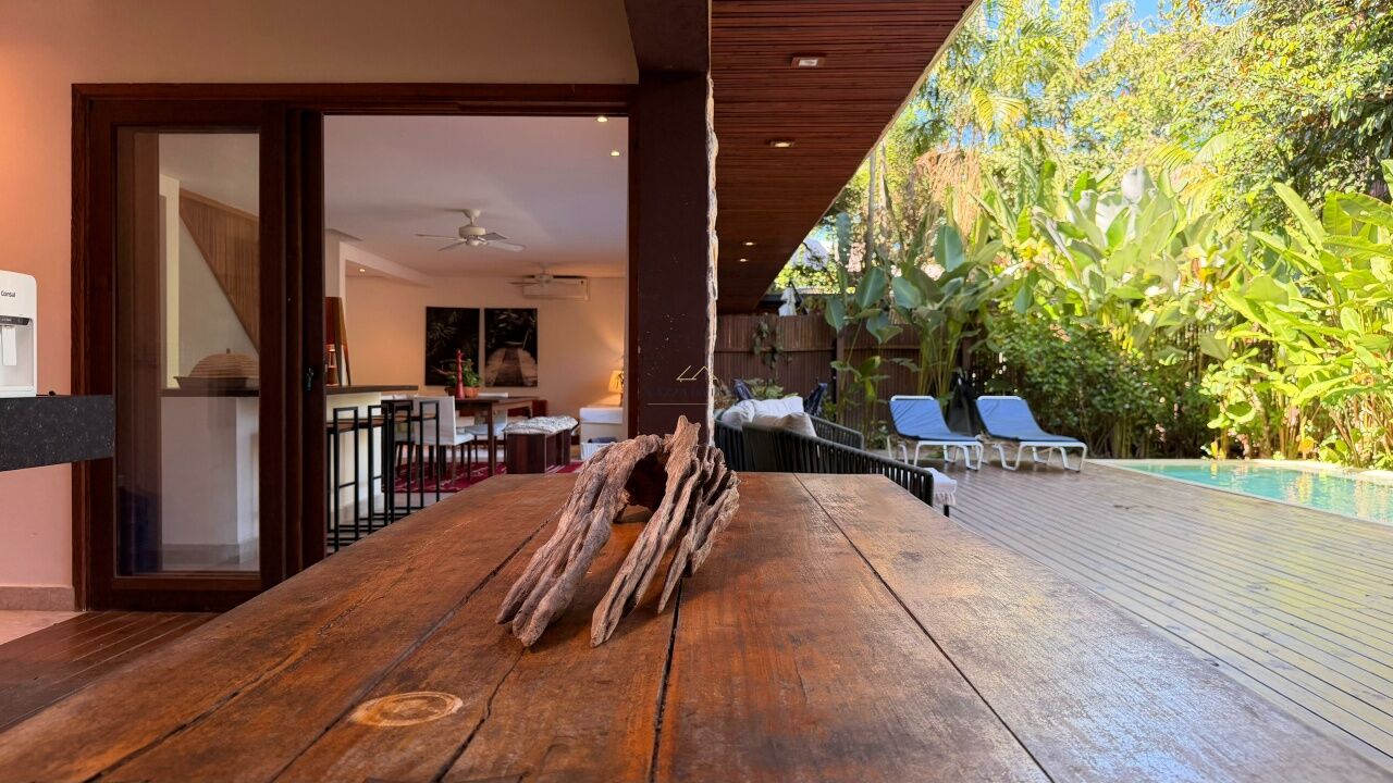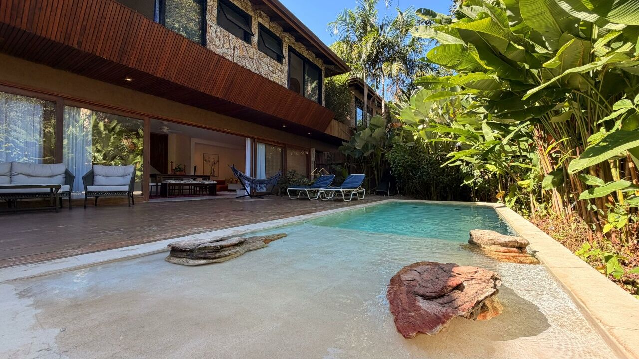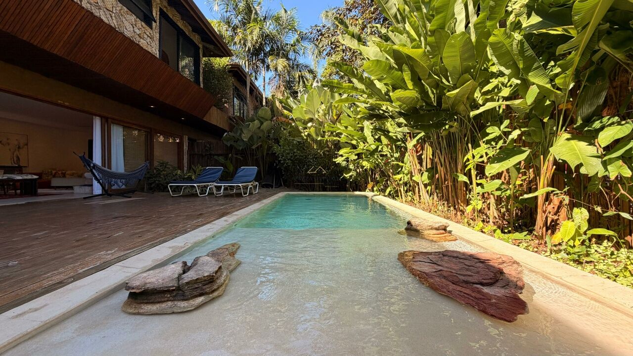 Na área externa, a piscina privativa completa a experiência, proporcionando lazer exclusivo em um ambiente tranquilo e sofisticado, perfeito para quem busca qualidade de vida em uma locação anual.